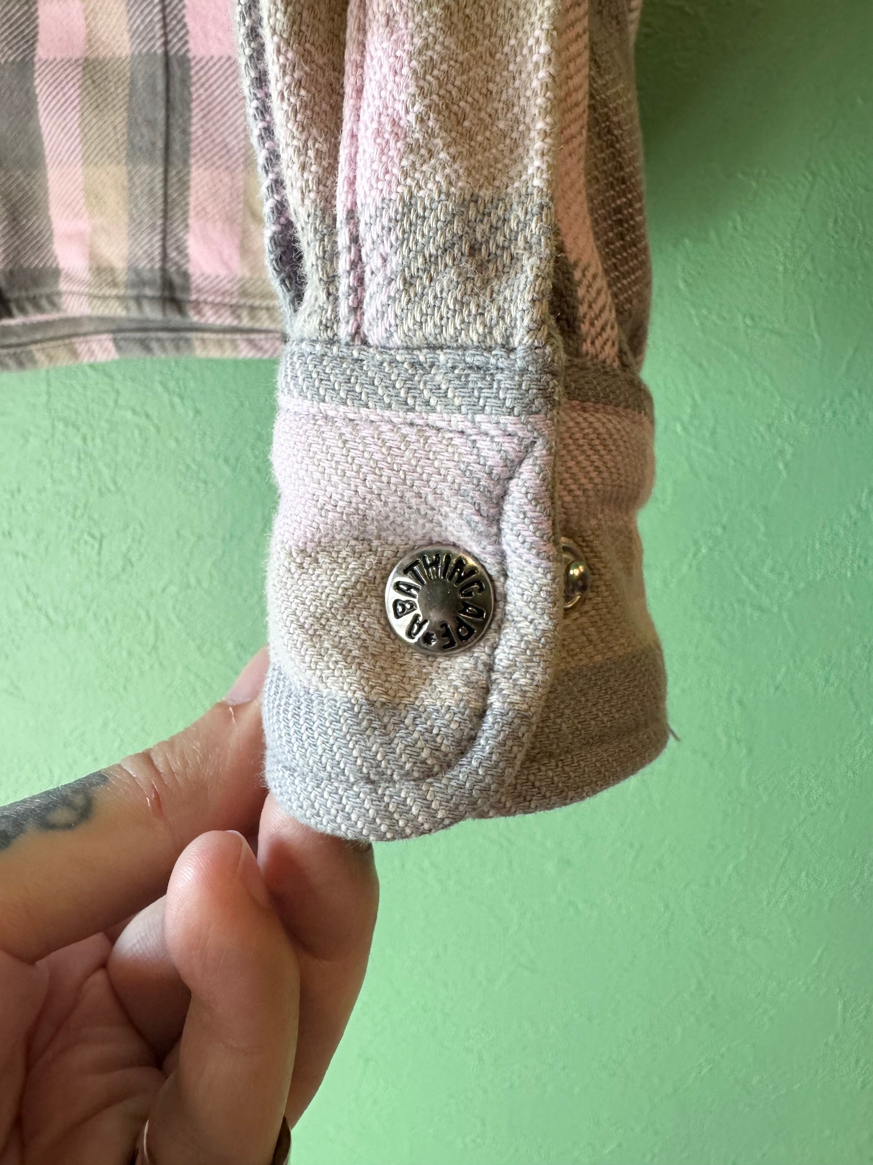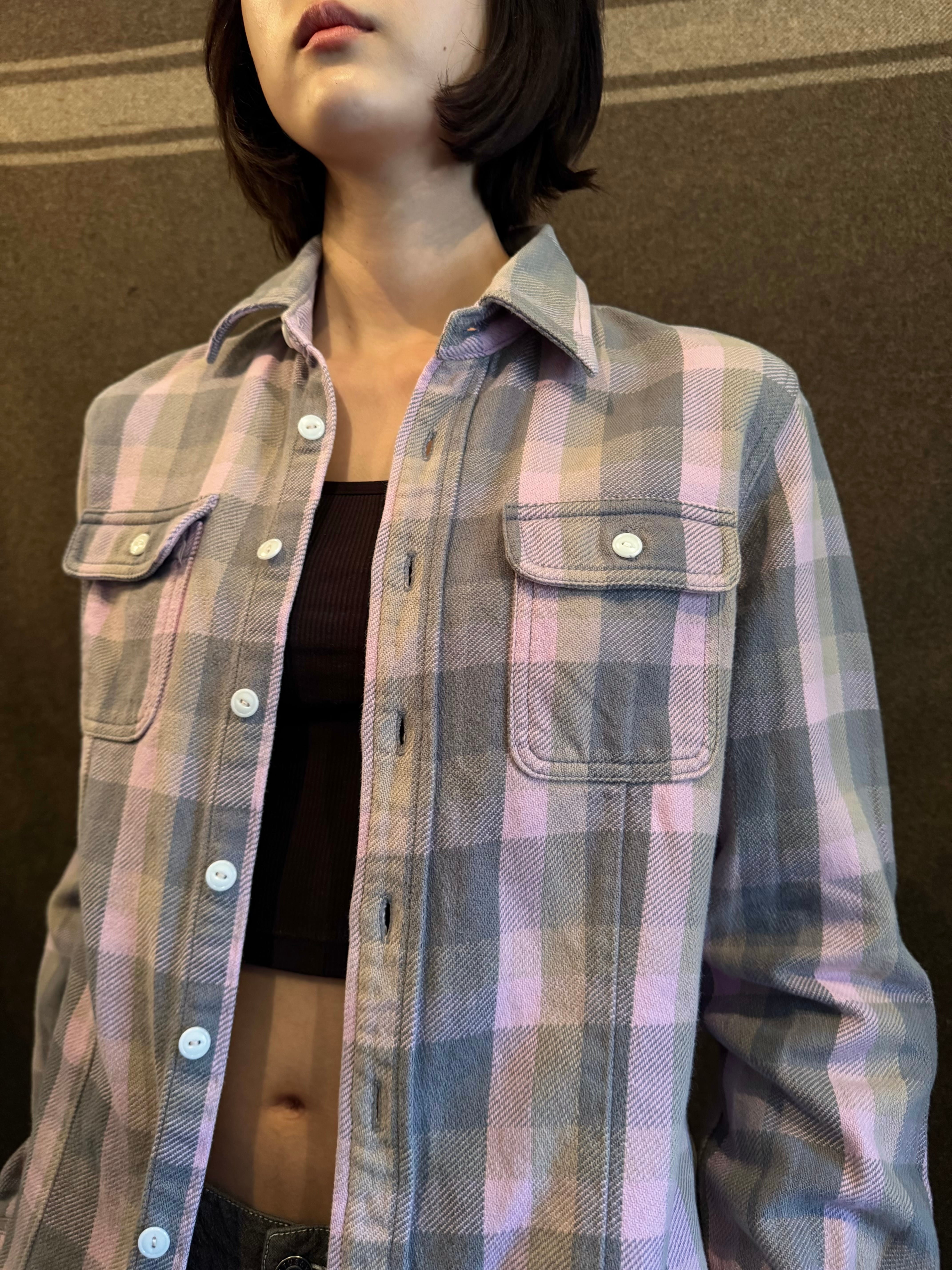 こちらは淡いピンク×グレーのバッファローチェックパターンの可愛いシャツ。