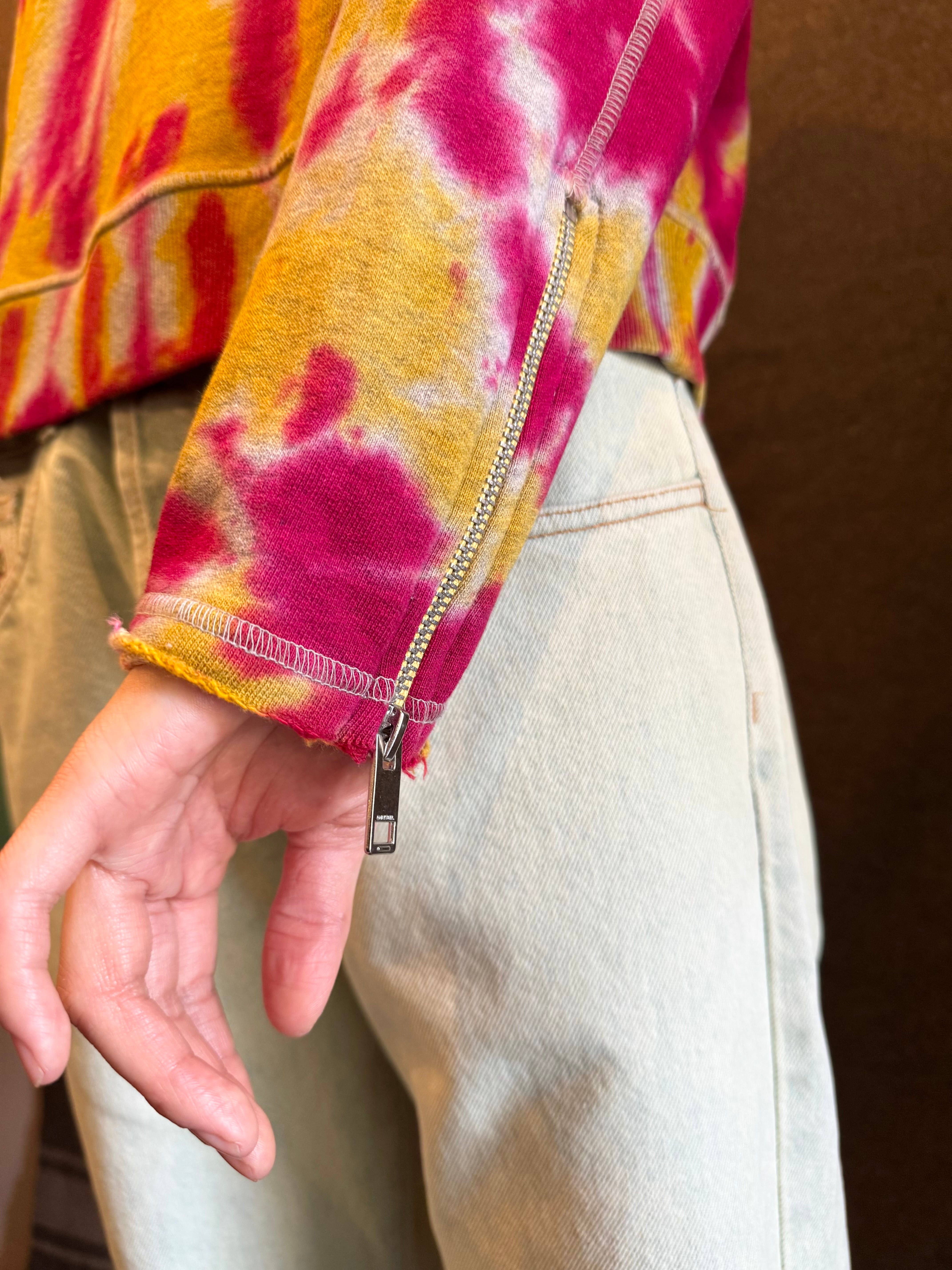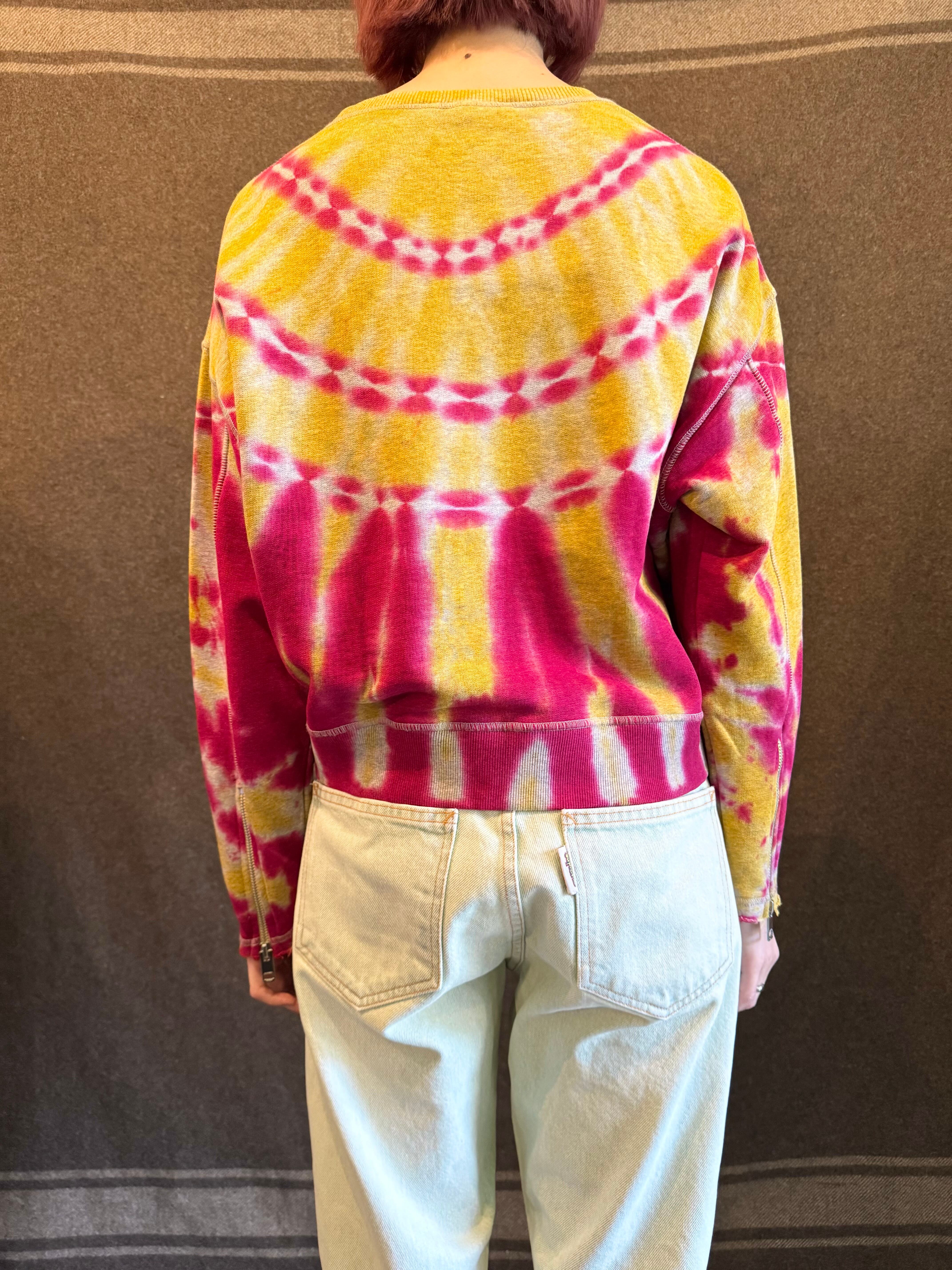 こちらはイエロー×ピンクパープルの独特なタイダイパターンの可愛いスウェット。