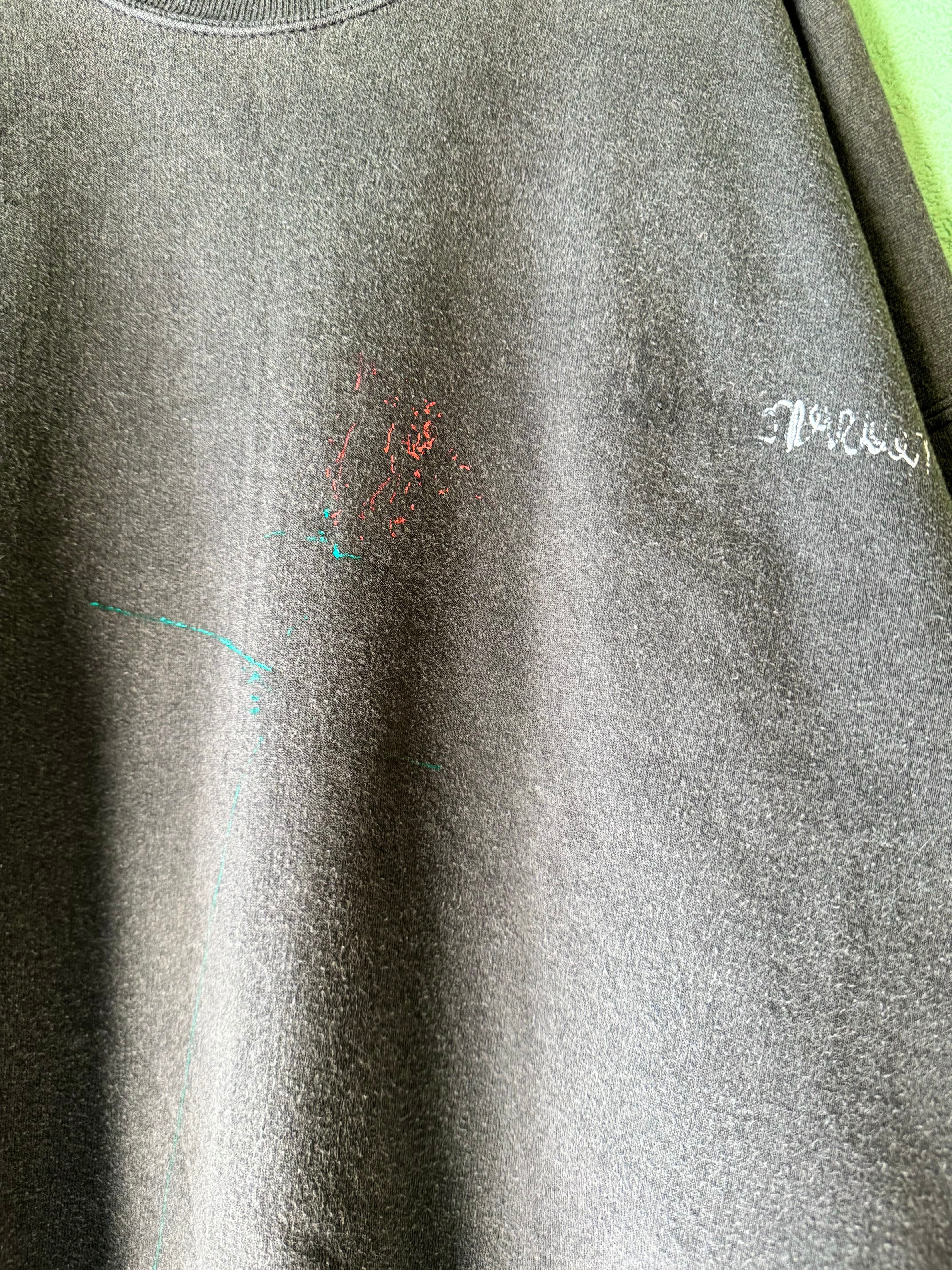 こちらはブラックカラーがかなりフェードしプリントもうっすらとしたほぼ残っていない古着ならではのスウェット。