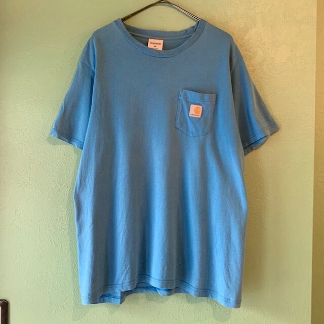 特に古い物ではありませんが水色のグッドカラーのポケット付き。ポケットには主張しすぎないブランドロゴ刺繍も。Tシャツなのでオールシーズン使えます。一枚は持っておきたい定番アイテムかと。