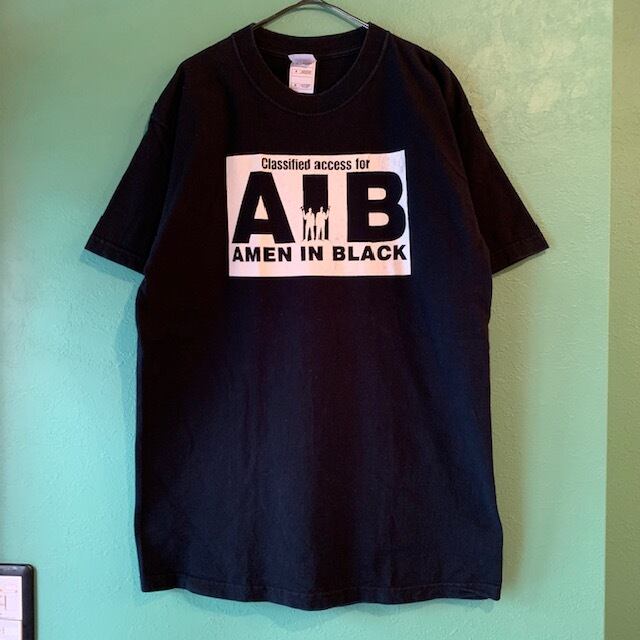 ■フルーツオブザルームのプリントTシャツです。MIB(メンインブラック)のパロディーでAIBとプリントされた一枚。今年MIB4も上映され人気の増した映画でもあります。古着ならではのパロディーノリかと思います。生地も地厚でくたりにくい生地感となっています。