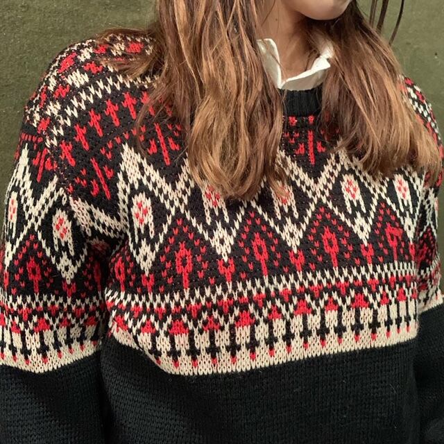 ■50~60年代のデザインウールニットです。何とも言えないノルディック風な可愛らしいパターン。あまりチクチクしにくいバージンウール使用。レディースアイテムでは最近あまり見かけないヴィンテージニットとなります。