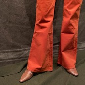 ■70~80年代のデッドストックのコーデュロイフレアパンツです。ビビッドなオレンジカラーにボタンフライデザインが可愛らしい一本。リーバイス646のようなキレイなフレアシルエット。よく見るとコーデュロイ生地という所もポイント。