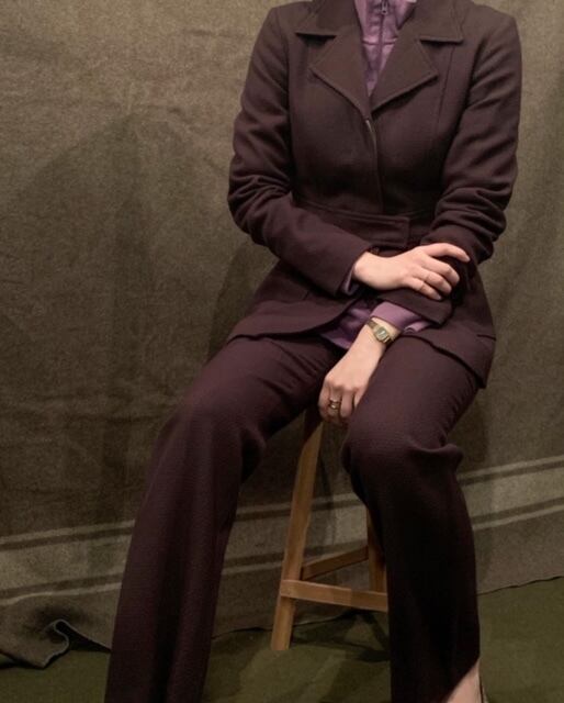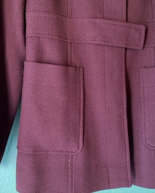 ■90年代のミッシェルクランの2ピースセットアップです。80年代にフランスで創設されたラグジュアリーブランド。こちらはシックな小豆色でジャケットとパンツのセットアップとなります。ジャケットは比翼仕立ててウエストのフェイクベルトのスナップボタンデザインになっています。パンツはキレイなストレートシルエットとなっています。