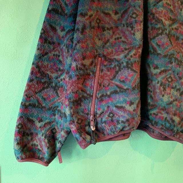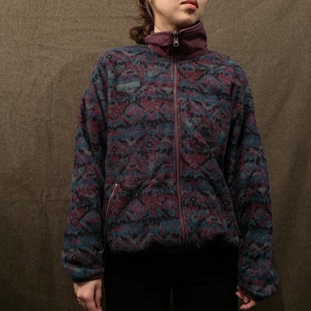 ■80~90年代のコロンビアのフリースジャケットです。アメリカの老舗アウトドアブランドのコロンビア。こちらは寒色系ベースとした毒々しいカラーリングのフリースジャケット。ジップアップで着脱もしやすく、アウトドアブランドであるだけ防寒性もばっちりです。アウターとしてももちろん、オーバーサイズのインナーとしても使えると思います。