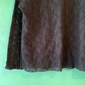 ■80年代頃のシアーデザインニットです。よく見ると花柄のような刺繍が施されている一着。こちらもリブなしでまるでカットソーのようなディテールとなっています。いやらしさもなく程よい透け感でカジュアルにもキレイめなスタイルにもハマるアイテムだと思います。