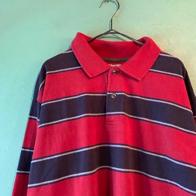 ■ST JOHN'S BAYのボーダーロングスリーブポロシャツです。JC PENNYの派生ブランドであるジョーンズベイ。こちらはレッド×ネイビーのカラーリングのボーダーパターン。ポロシャツですが鹿の子ではないのでロンT感覚で着れる一着。ストリートや横ノリ系のスタイルにハマるアイテムだと思います。