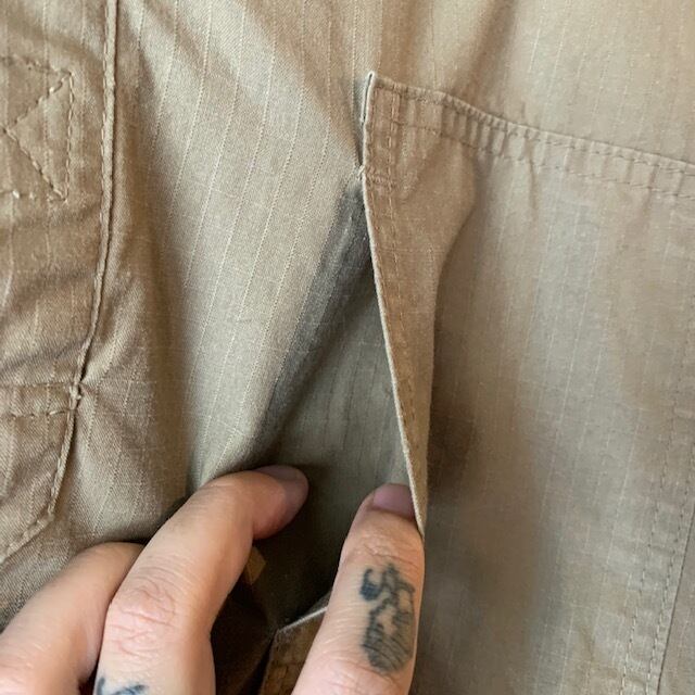 国内製のミリタリーアイテムを製造する老舗ブランドのHOUSTON。こちらは首元がベロクロタイプのプルオーバーシャツ。マットなベージュカラーにリップストップ生地、両胸にスリットポケットデザイン。ありそうでなかった気の利いたデザインアイテム。グッドレギュラーな一着。