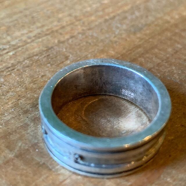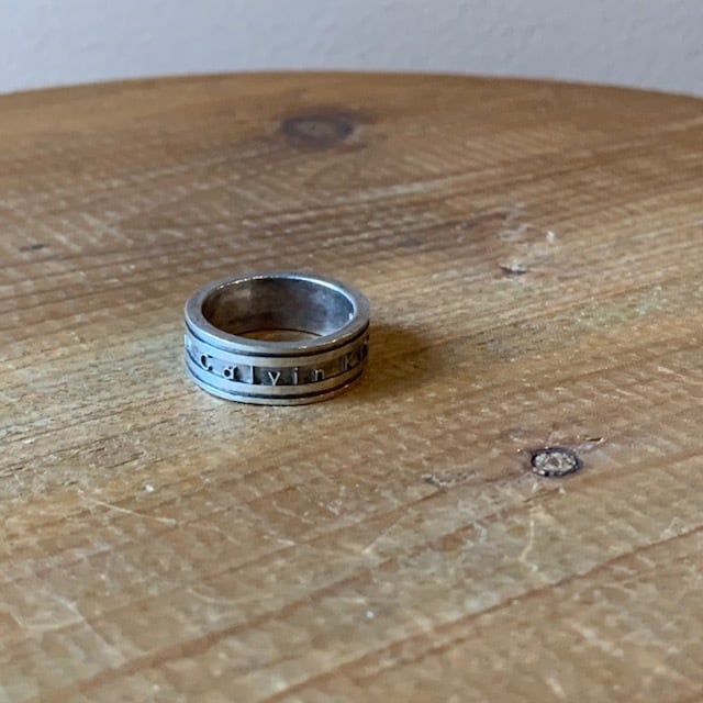こちらはラインとブランド刻印の施されたデザインリング。シンプルなデザインながらも程よい存在感のあるアイテム。