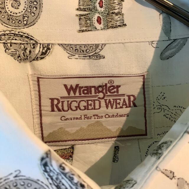 ■80年代頃のラングラーの総柄ボタンダウン半袖シャツです。