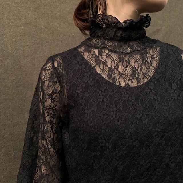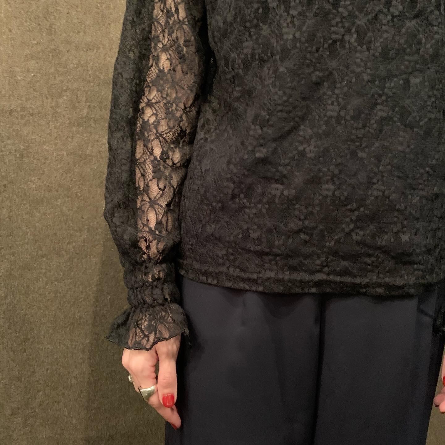 程よい透け感に刺繍デザインの可愛らしい一着。ややハイネック気味の作りにネックと袖がキュッと絞られたドレッシーなディテールとなっています。一枚でももちろん、インナー使いやTシャツなどと合わせても◎