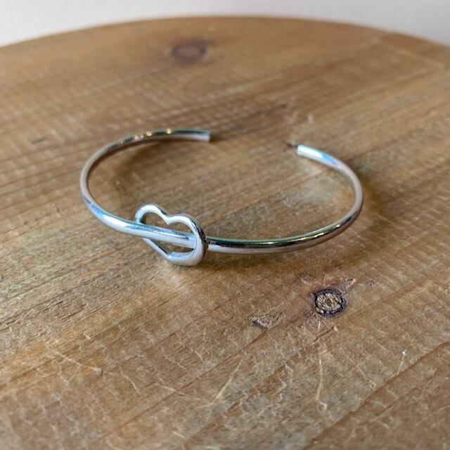 まるでオールドティファニーのようなハートモチーフの可愛らしいバングル。ミニマルでシンプルなデザインなのでスタイル問わず使いやすいアイテムです。