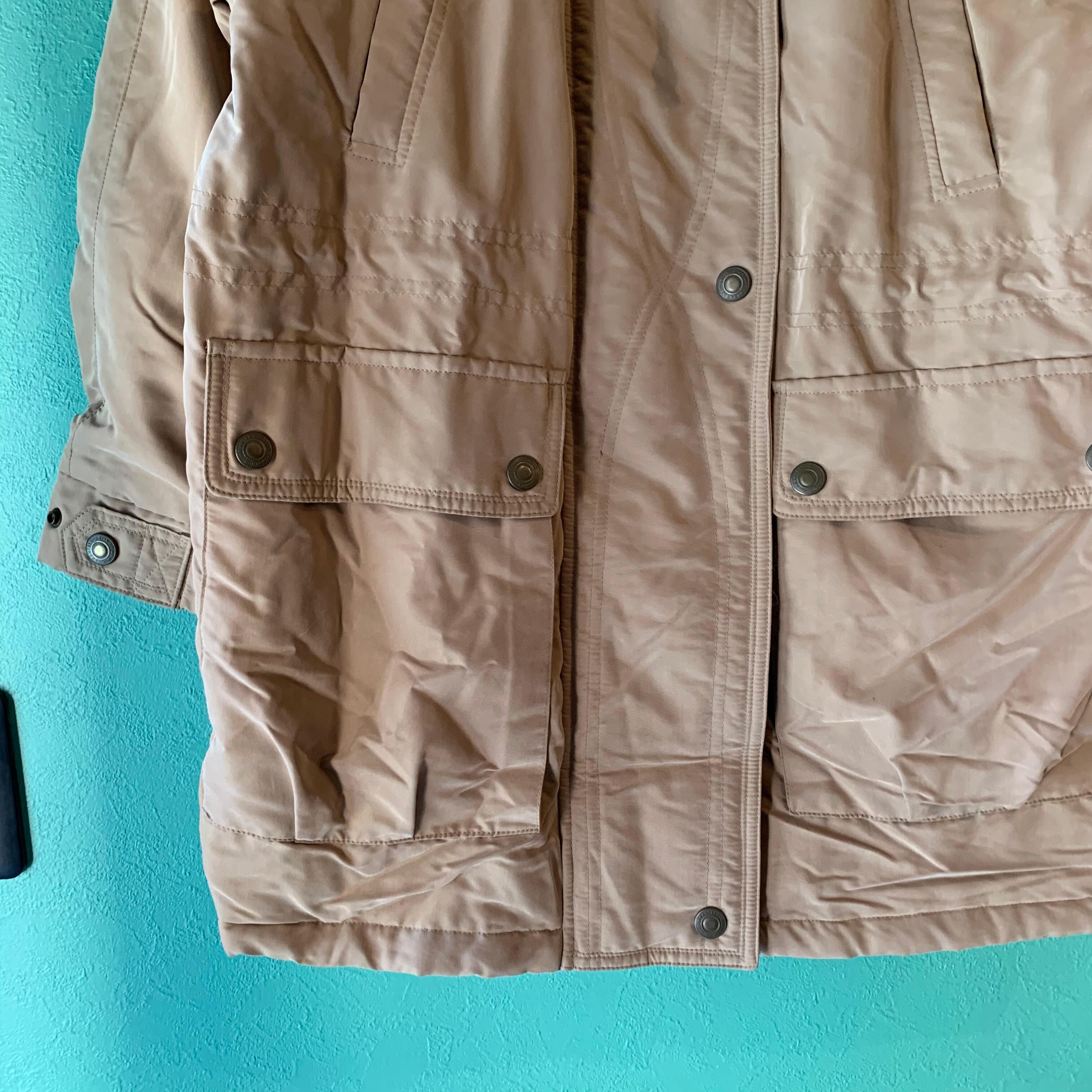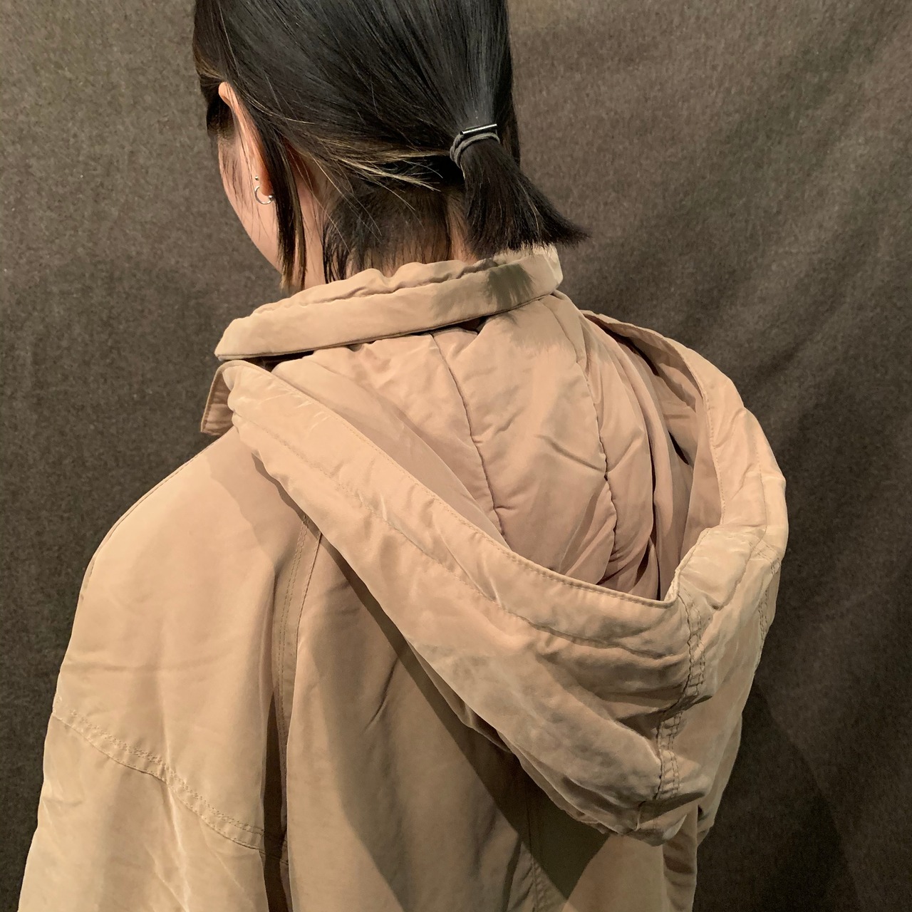 都会的なベージュカラーにフェイクスエードのようなしっとりとした生地感。オリジナルよりも野暮ったさもなく中綿入りなので防寒性もバッチリです。フードも取り外し可能なので用途に合わせて使えます。