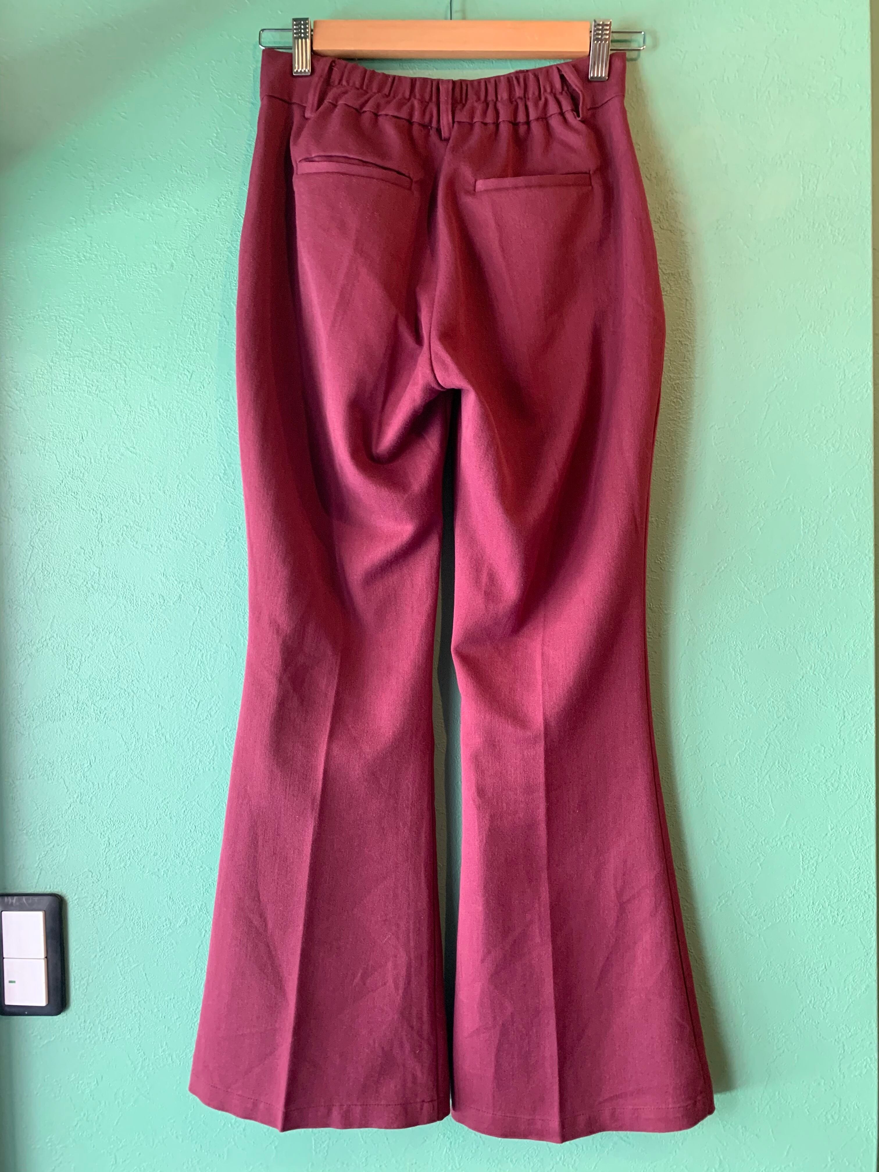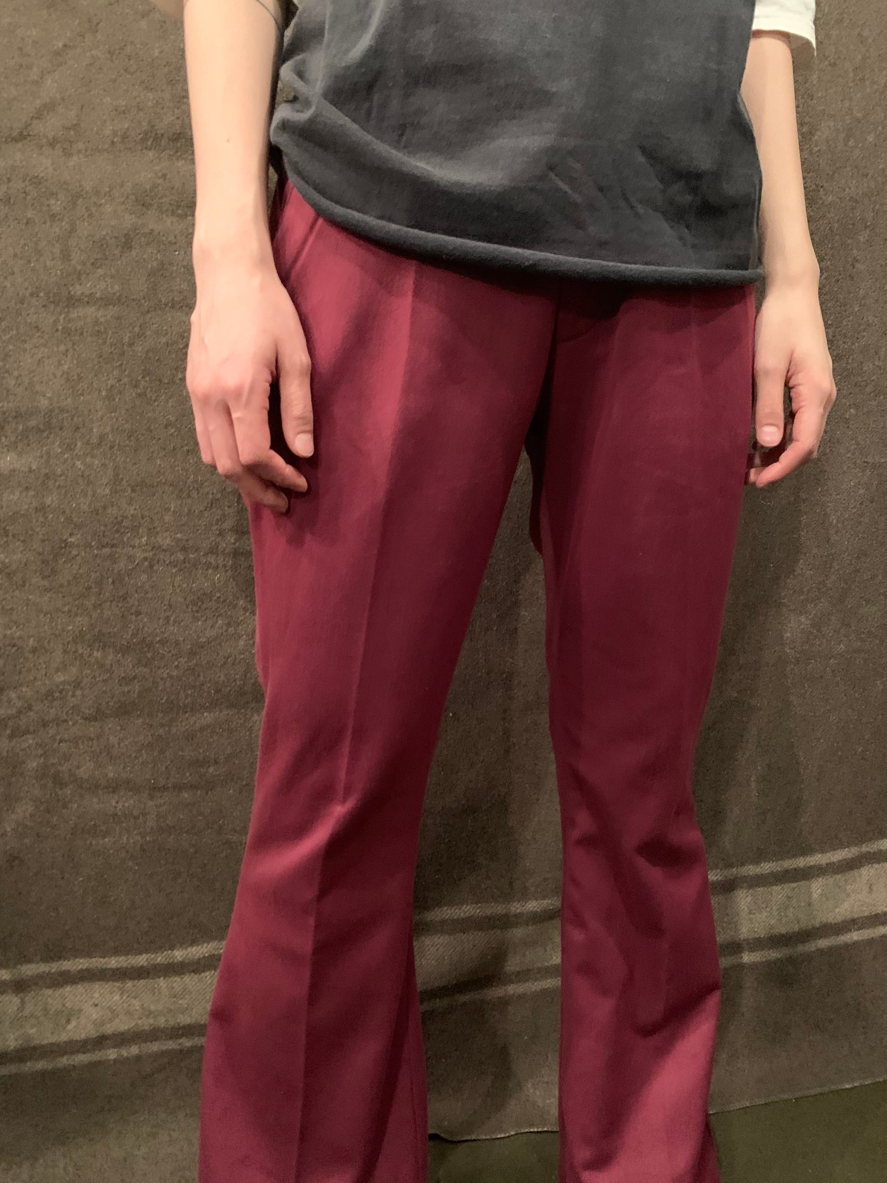 ボルドーカラーにリーバイスの517のようなほどよいフレアのブーツカットシルエットのスラックス。