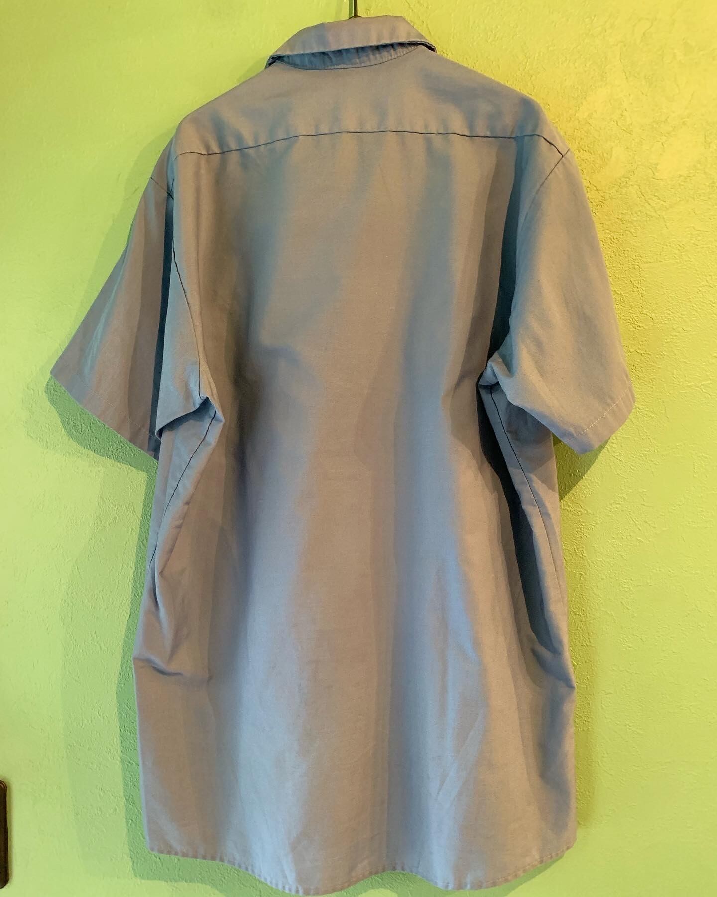 ワークシャツなのでトップボタンの開襟しやすいようにスナップボタンが使用された利便性も◎