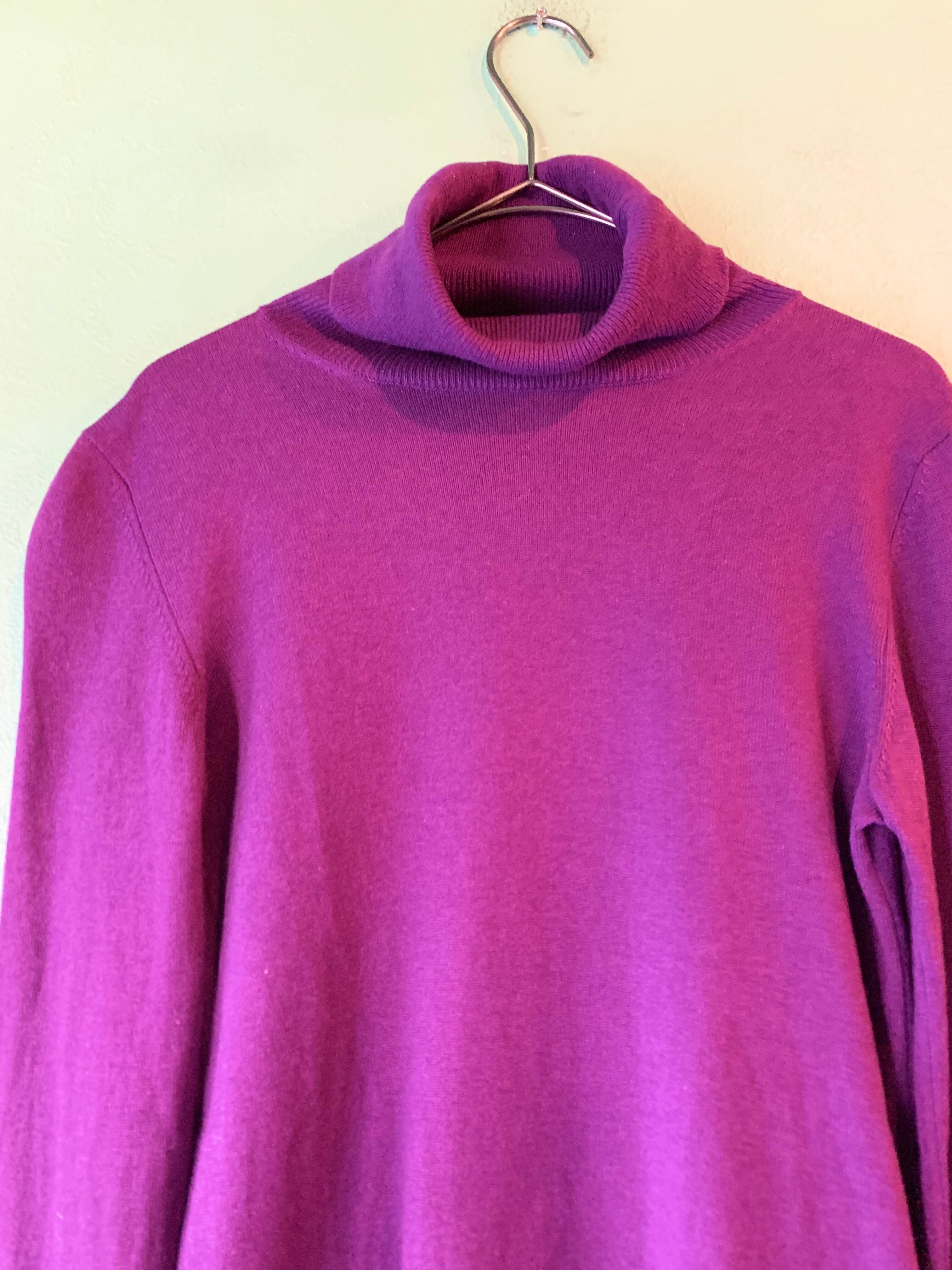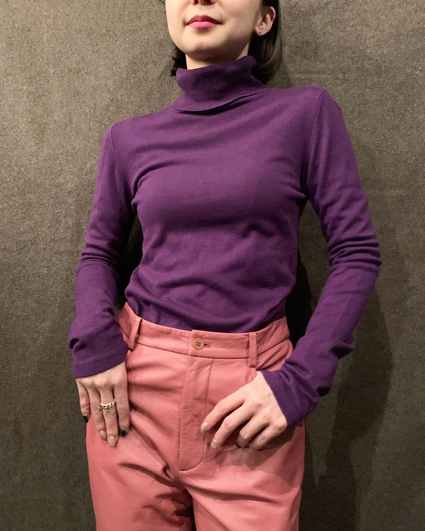 こちらはいたってシンプルなデザインのハイゲージタートルネックニット。