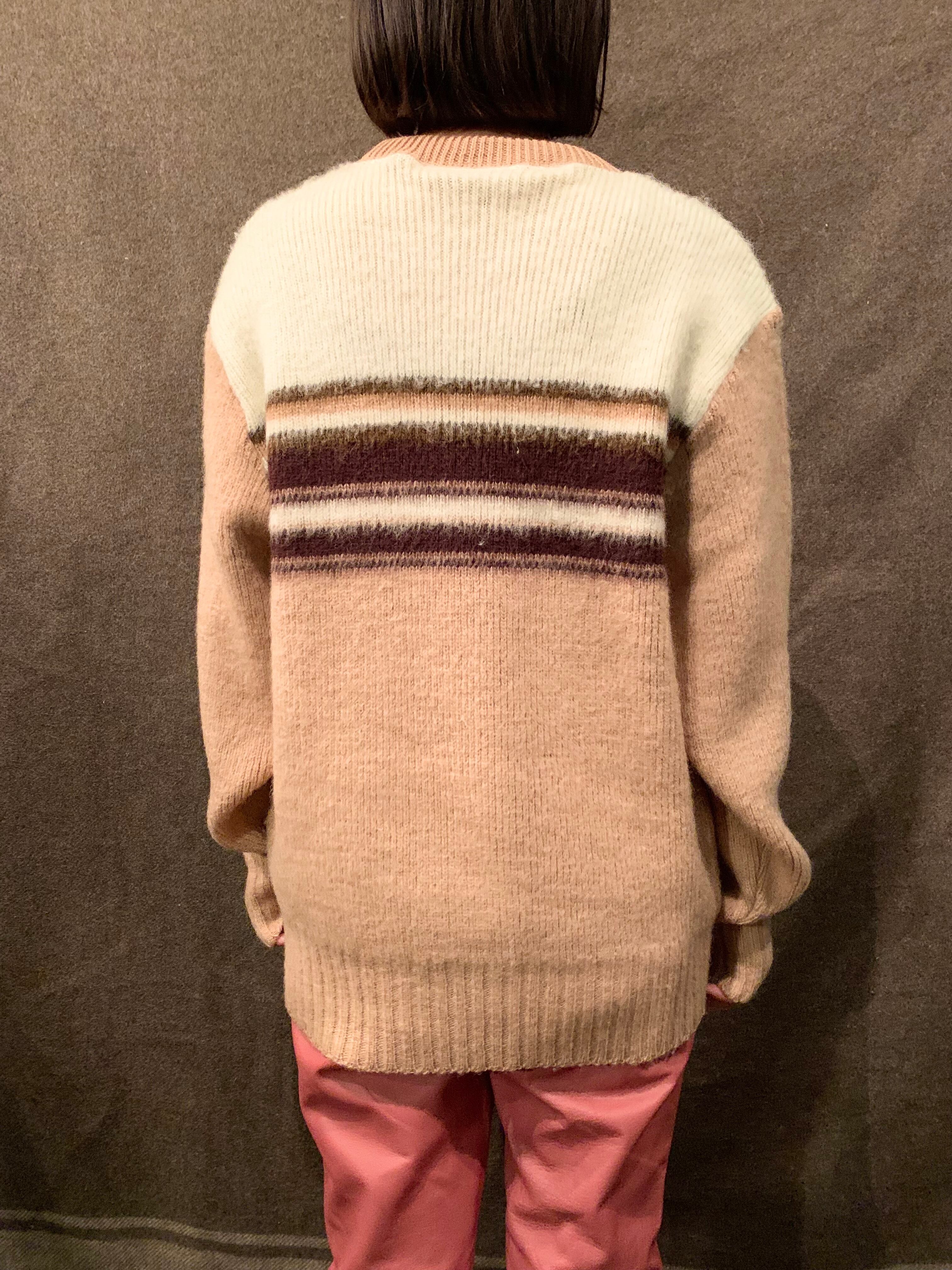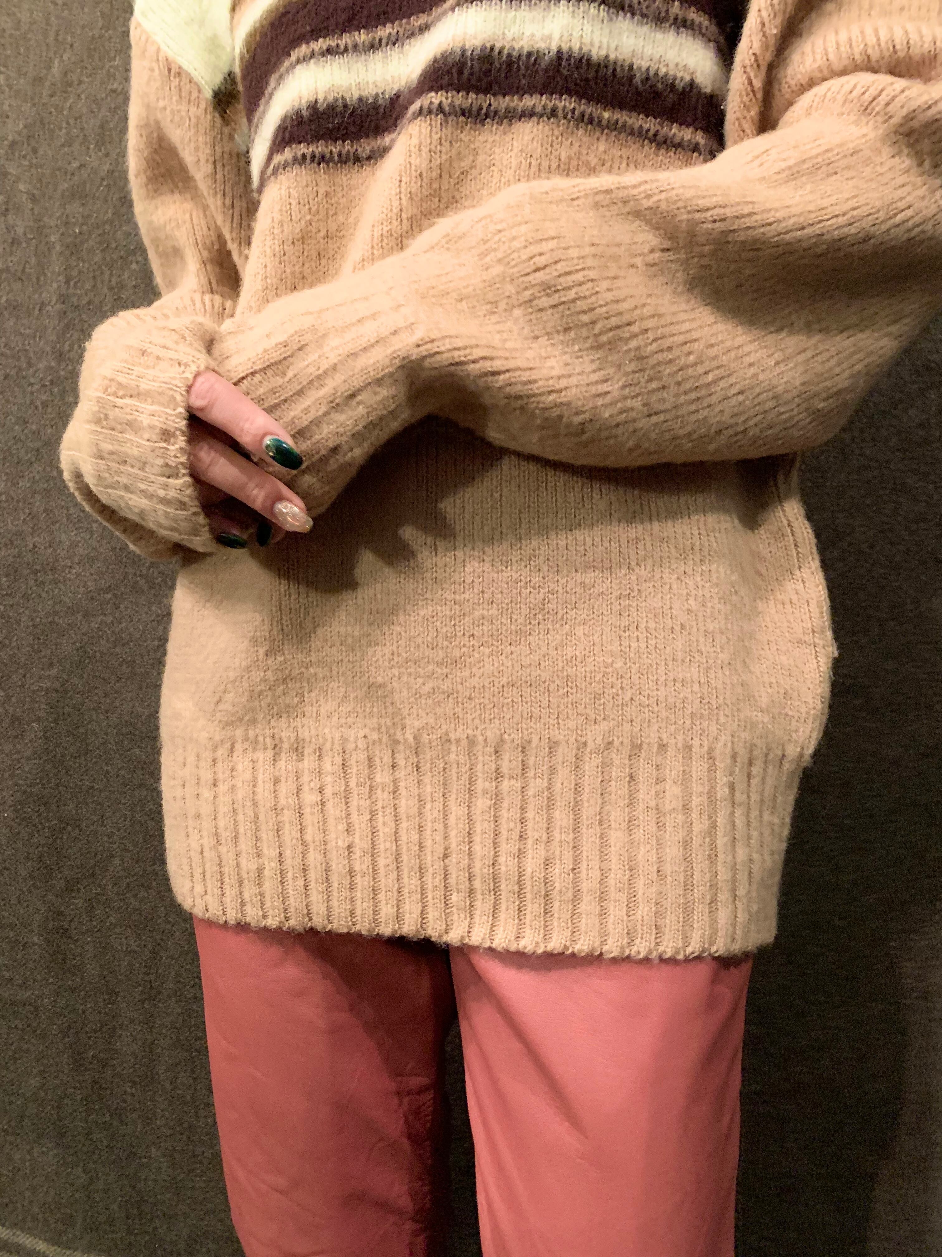こちらはベージュ×ブラウン×ホワイトのカラーリングが切り替えになった可愛いデザインニット。