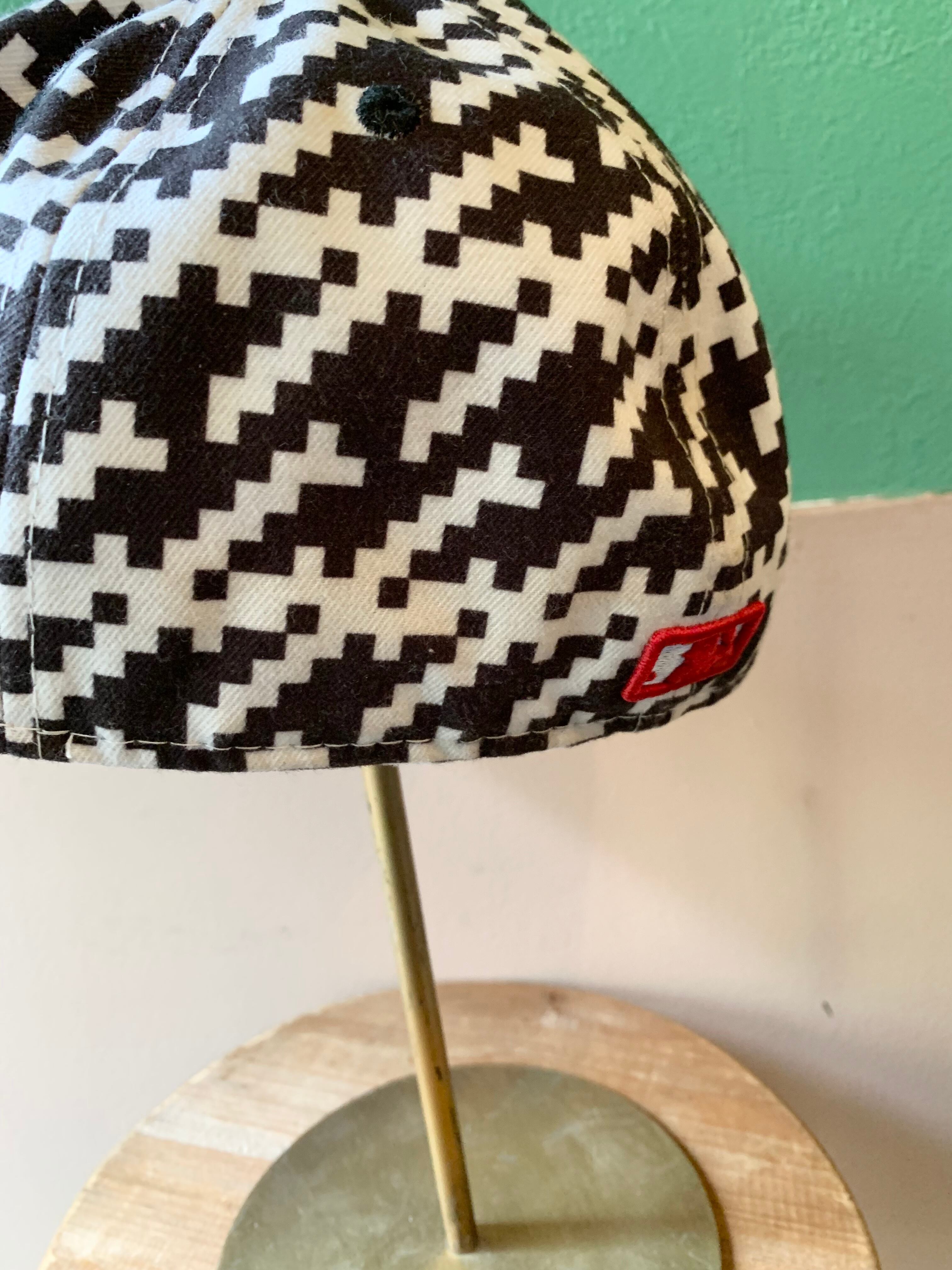 モノトーンのデジカモに千鳥格子のような柄の珍しいアイテム。赤いヤンキースロゴもアクセントに。