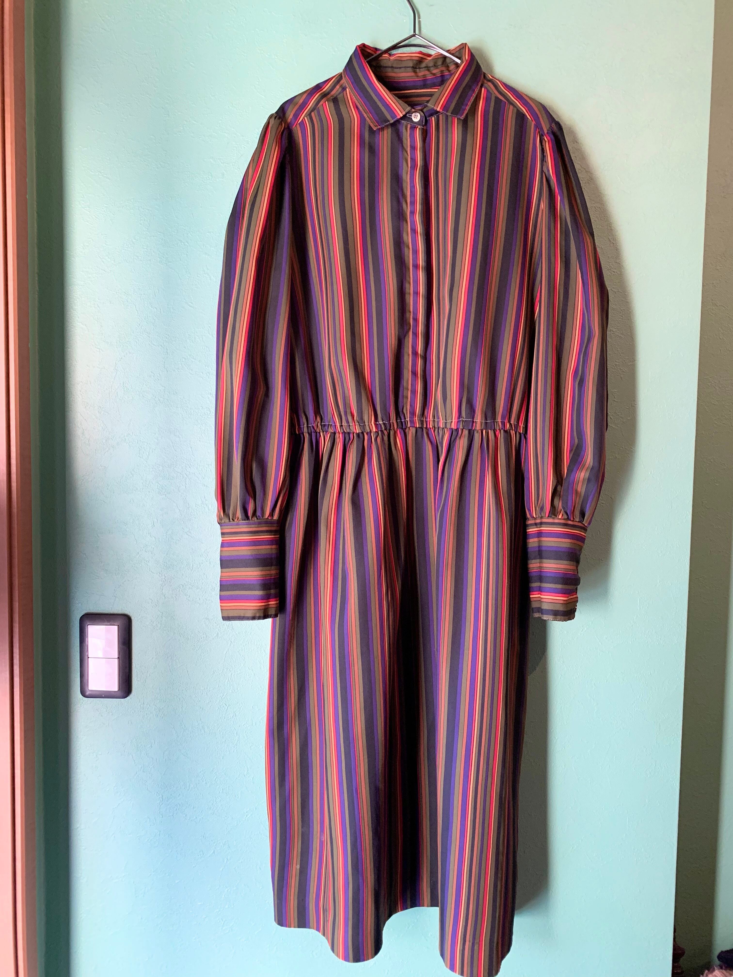 ■70〜80年代頃のマルチストライプデザインワンピースです。