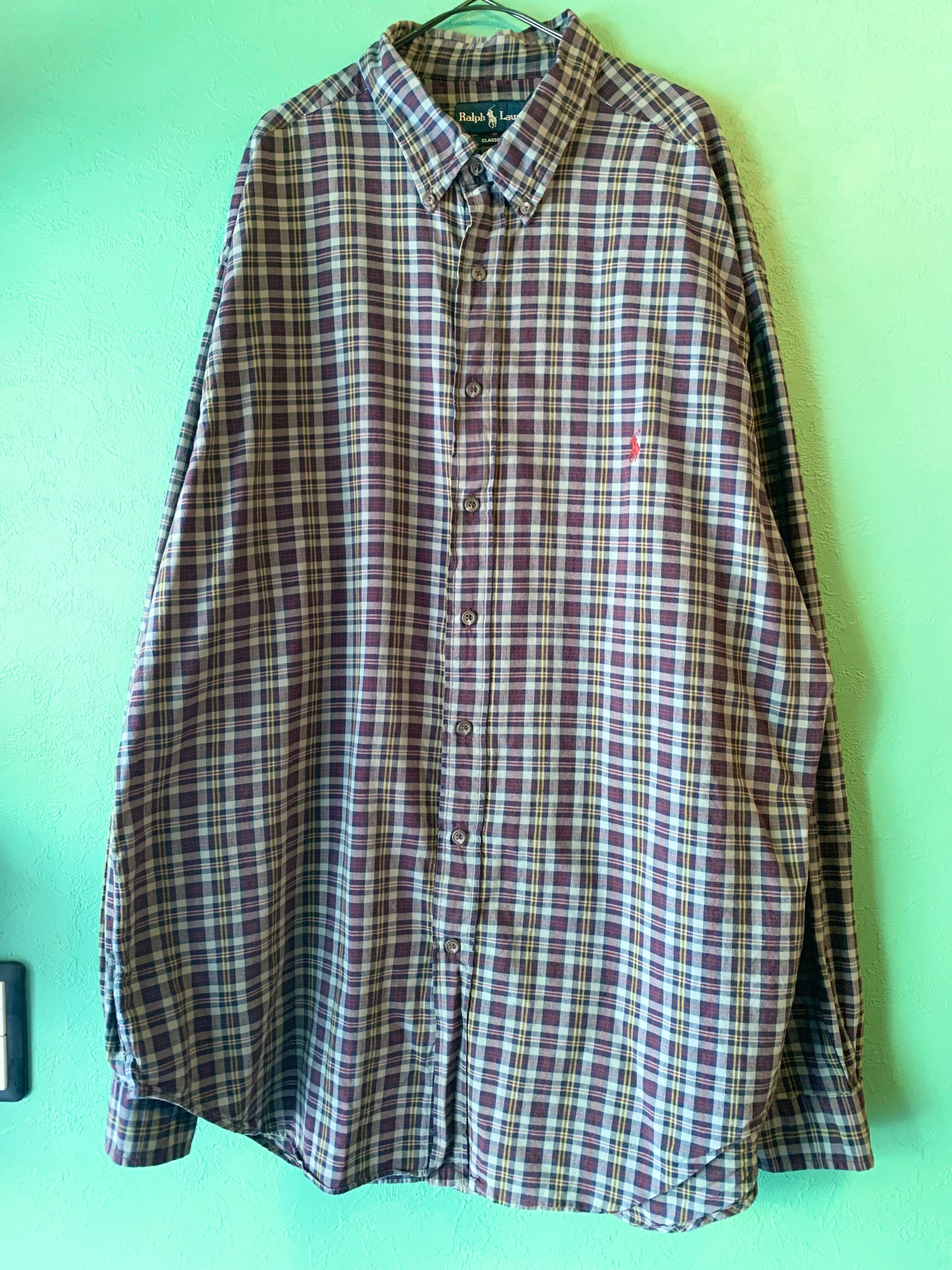 クラシックなイメージのラルフのボタンダウンですがなんとも言えない絶妙なカラーリングのチェックパターンに2XLと規格外な大きさ。