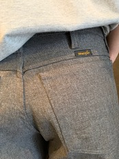 こちらは1960年代のカウボーイたちがパーティなどでおしゃれを楽しむために開発されたランチャーパンツ。正式名である「ランチャードレスジーンズ」にも、正装用という意味合いがこめられています。美脚を描けるこの絶妙なフレアシルエットと、洗濯をしても消えないセンタープレスが魅力的な一本。