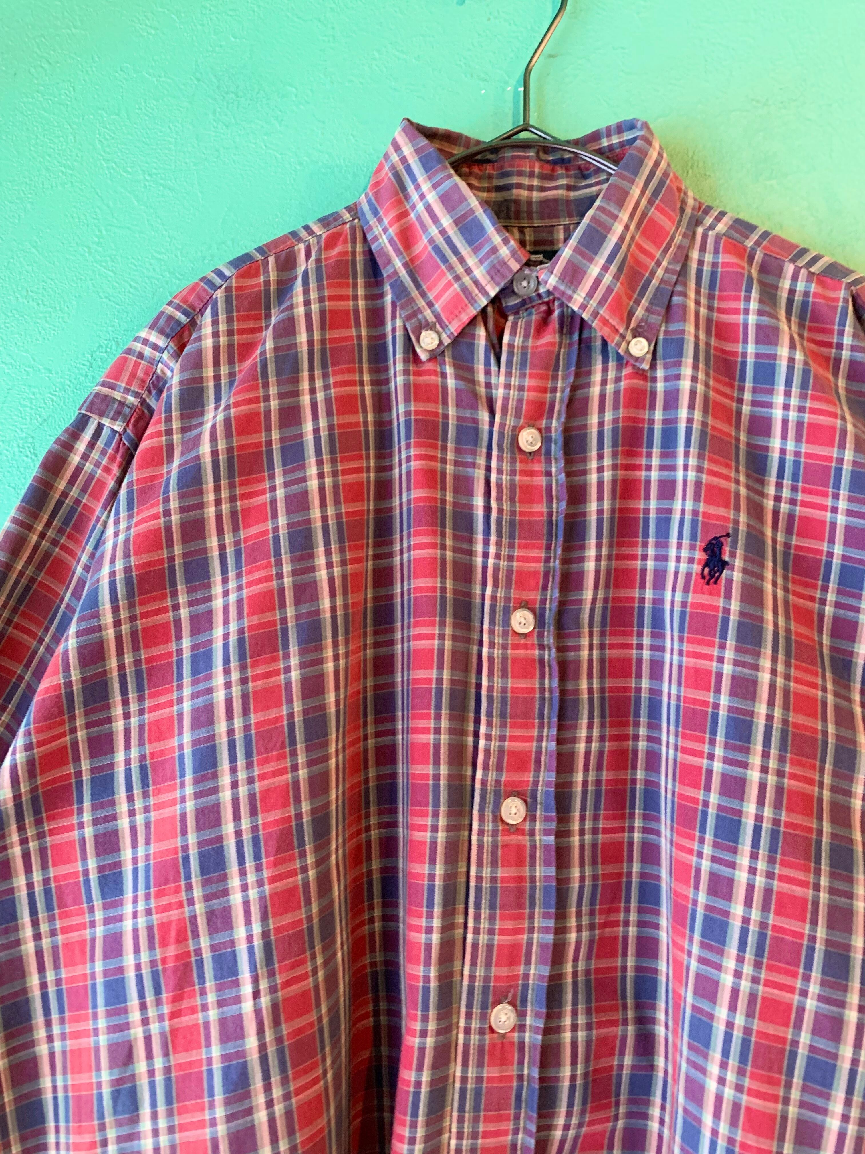 ■90年代ラルフローレンのボタンダウン半袖チェックシャツです。