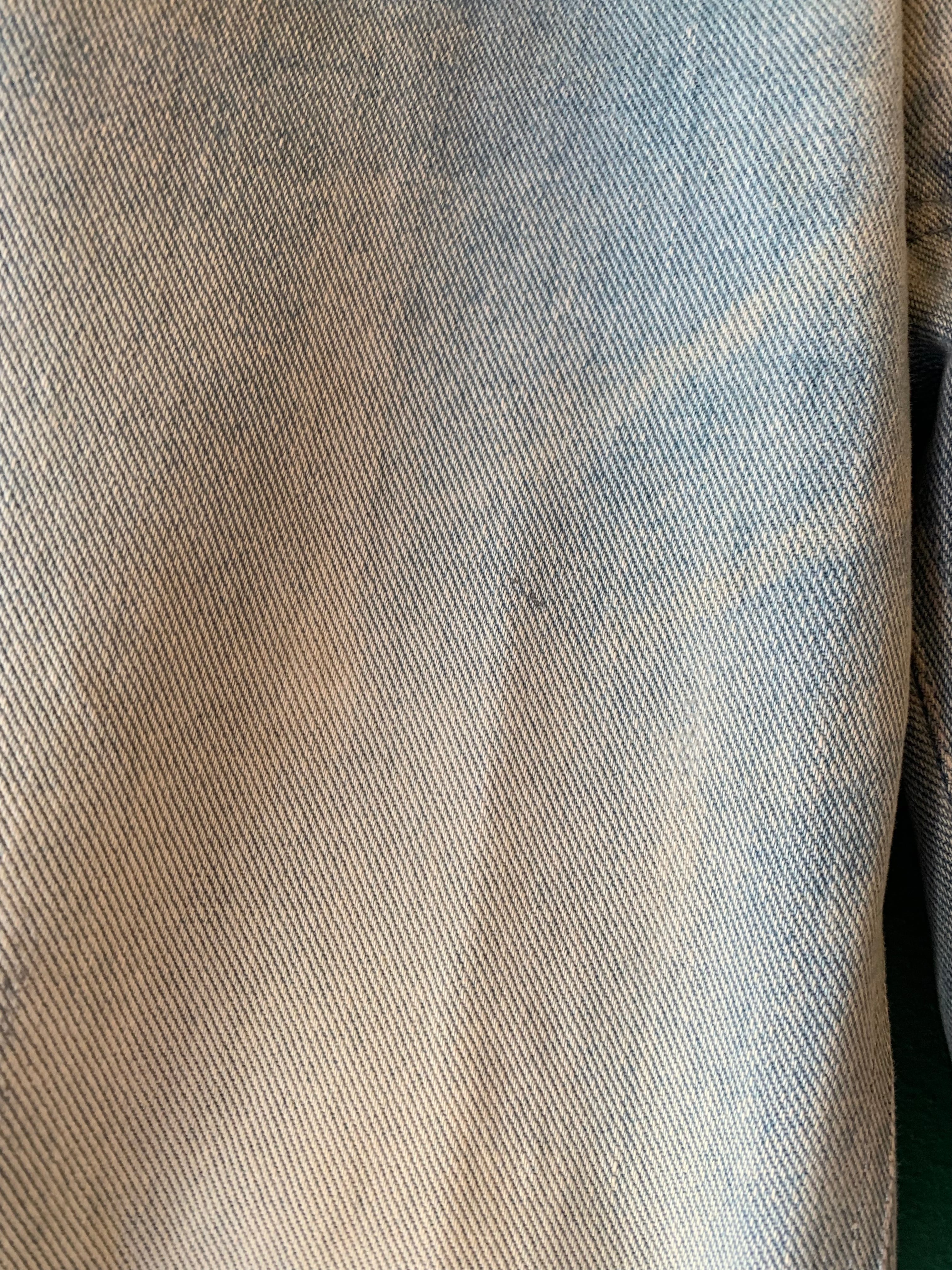 アイスブルーまでフェードした色落ちも古着ならではの雰囲気が出ており、膝下からの程よいフレアシルエットも美脚に見える効果があります。