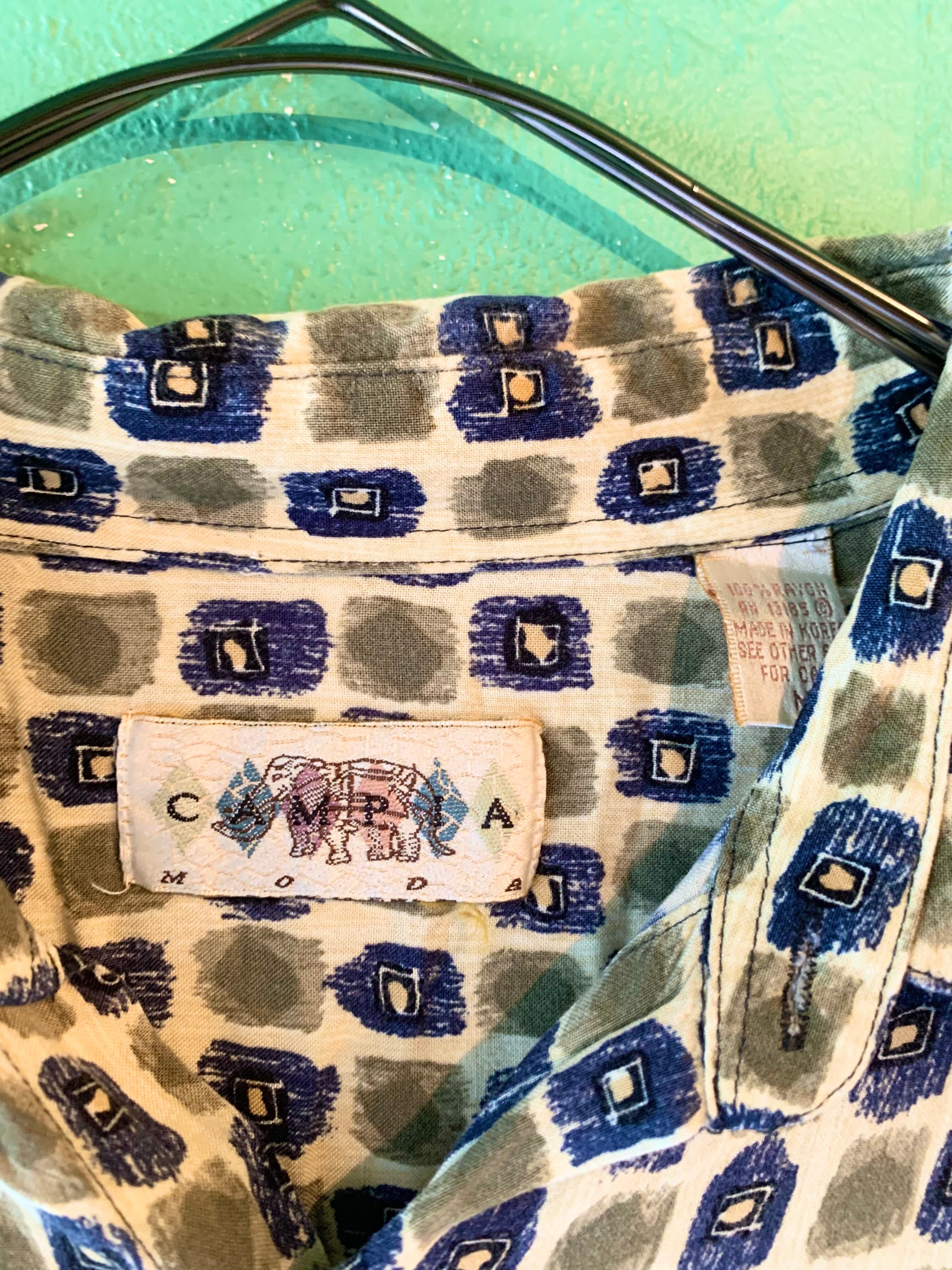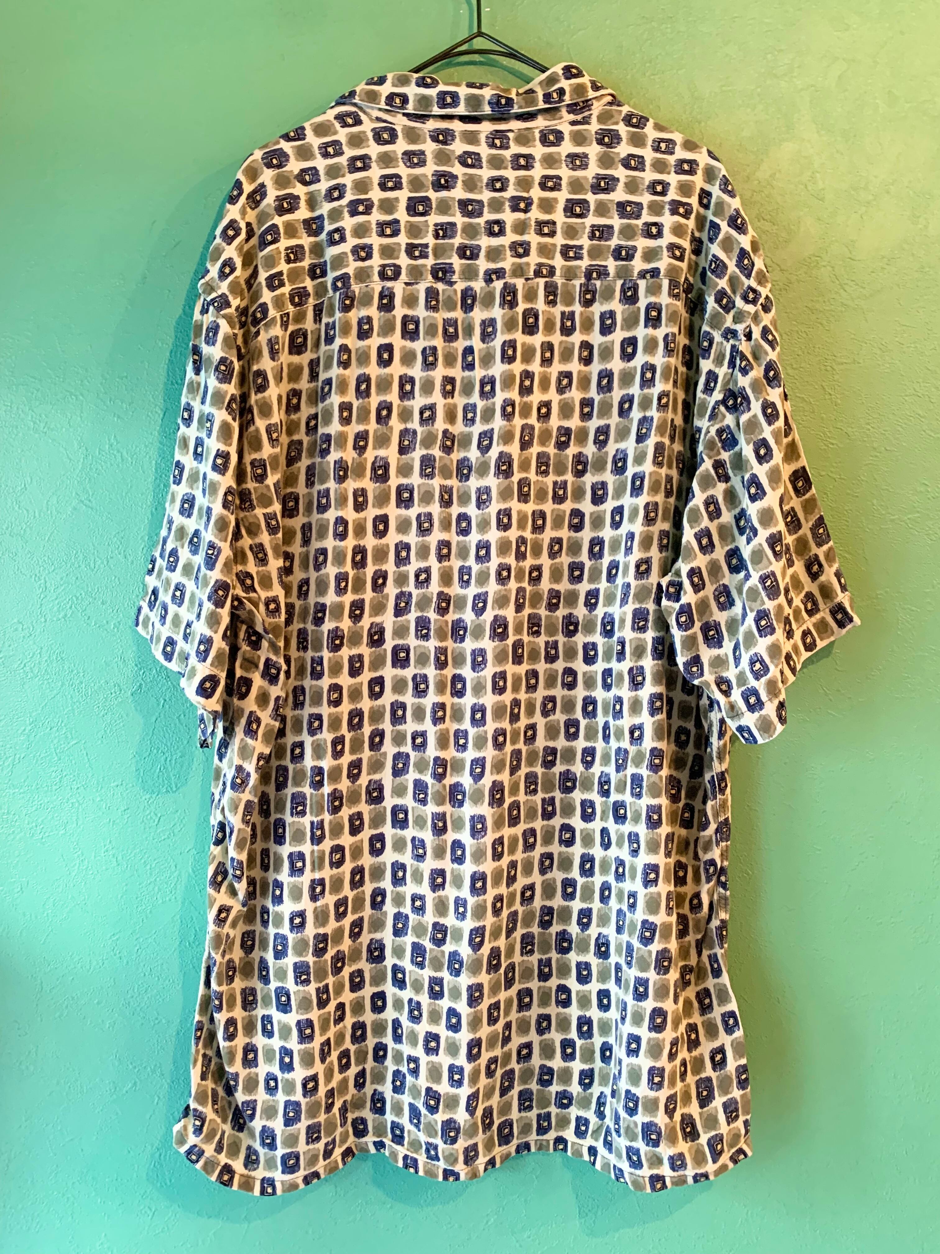 柄シャツですが落ち着きのある色味で軽装になるにつれシンプルになりがちなコーディネートのアクセントとなってくれる1着かと思います。