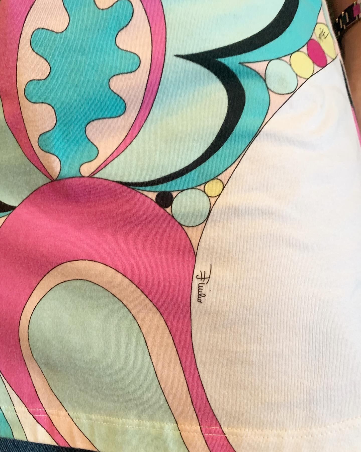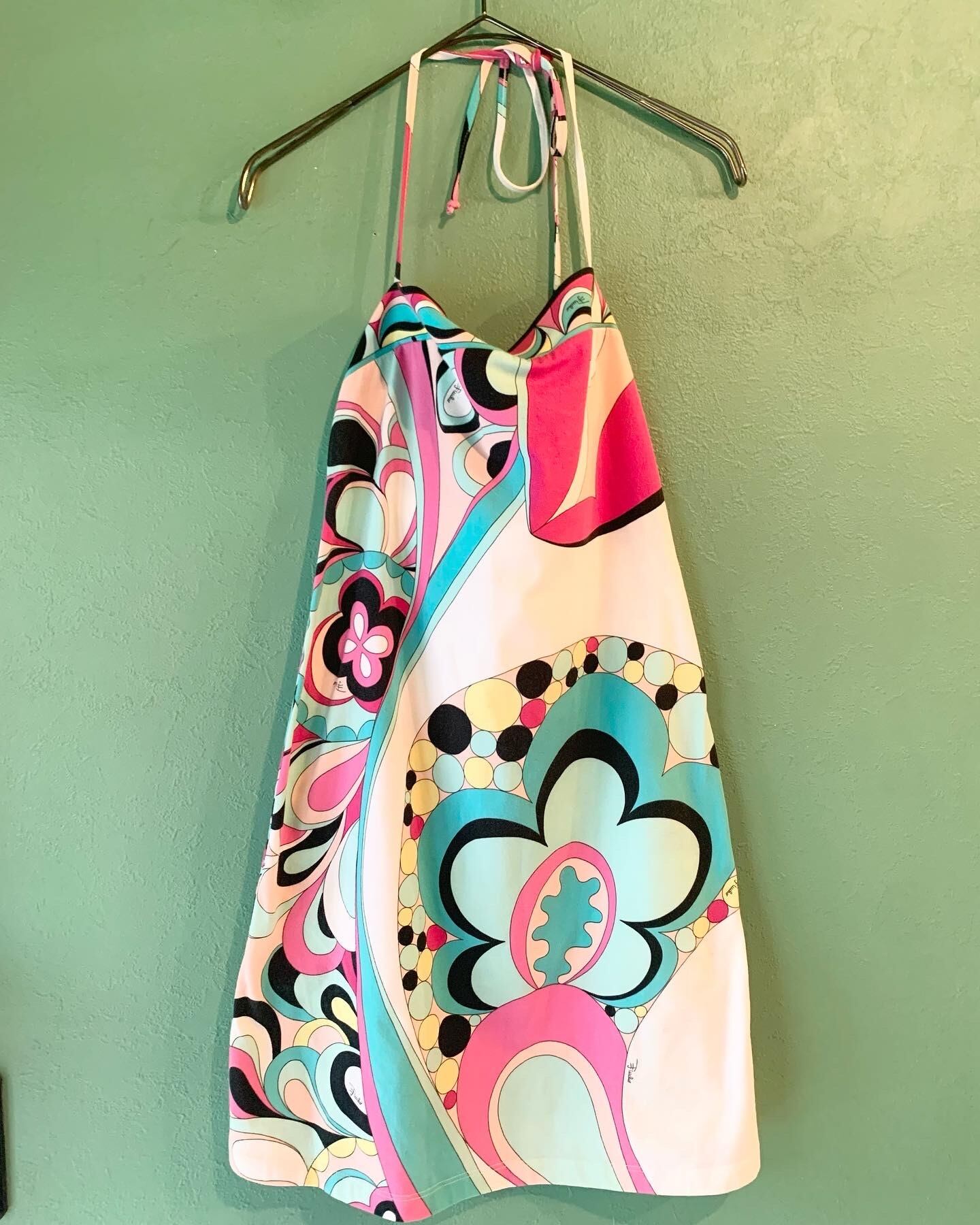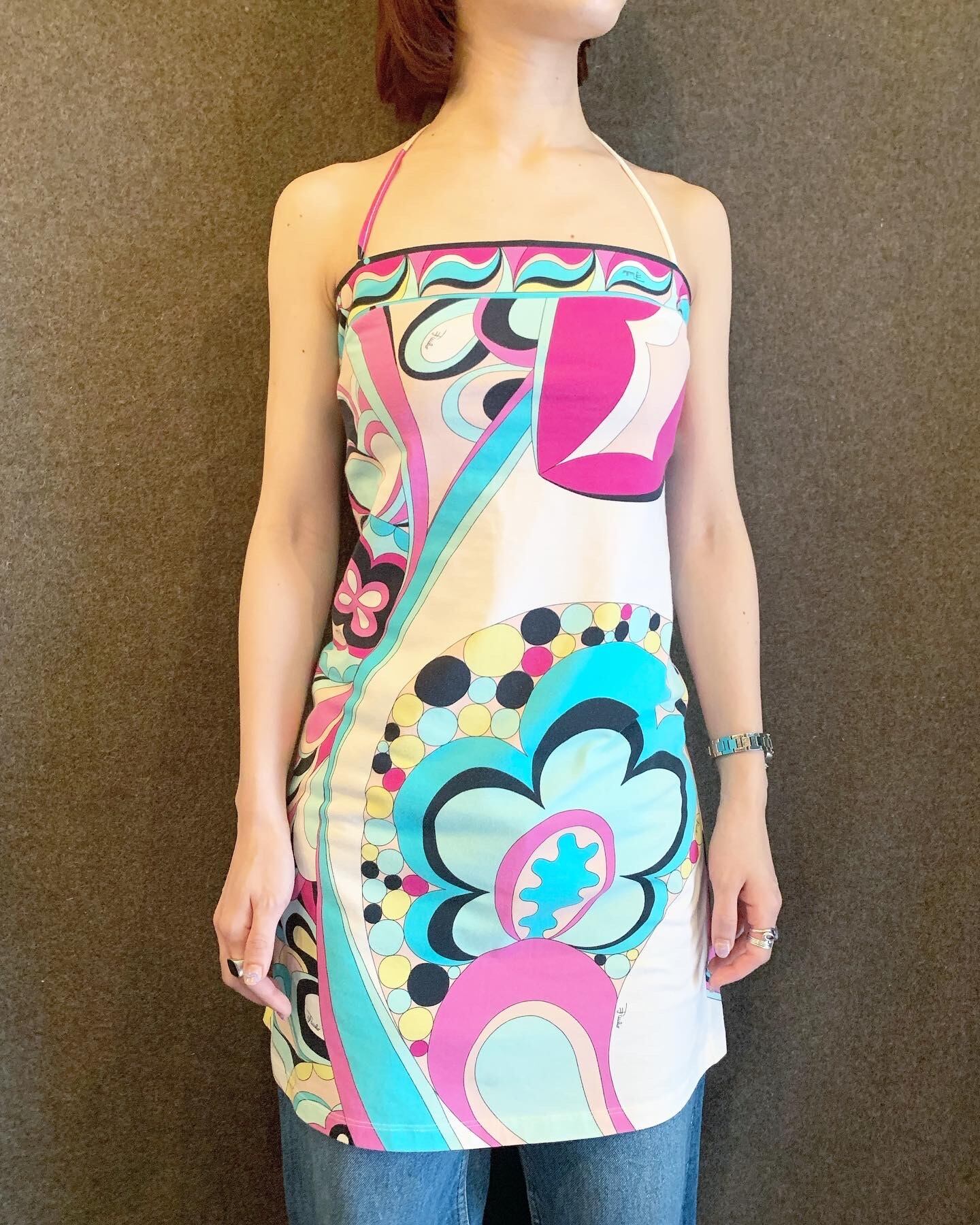 こちらは定番ともされているプッチ柄のキャミワンピース。色鮮やかなカラーリングに独特な柄がまさにエミリオプッチといった一着。