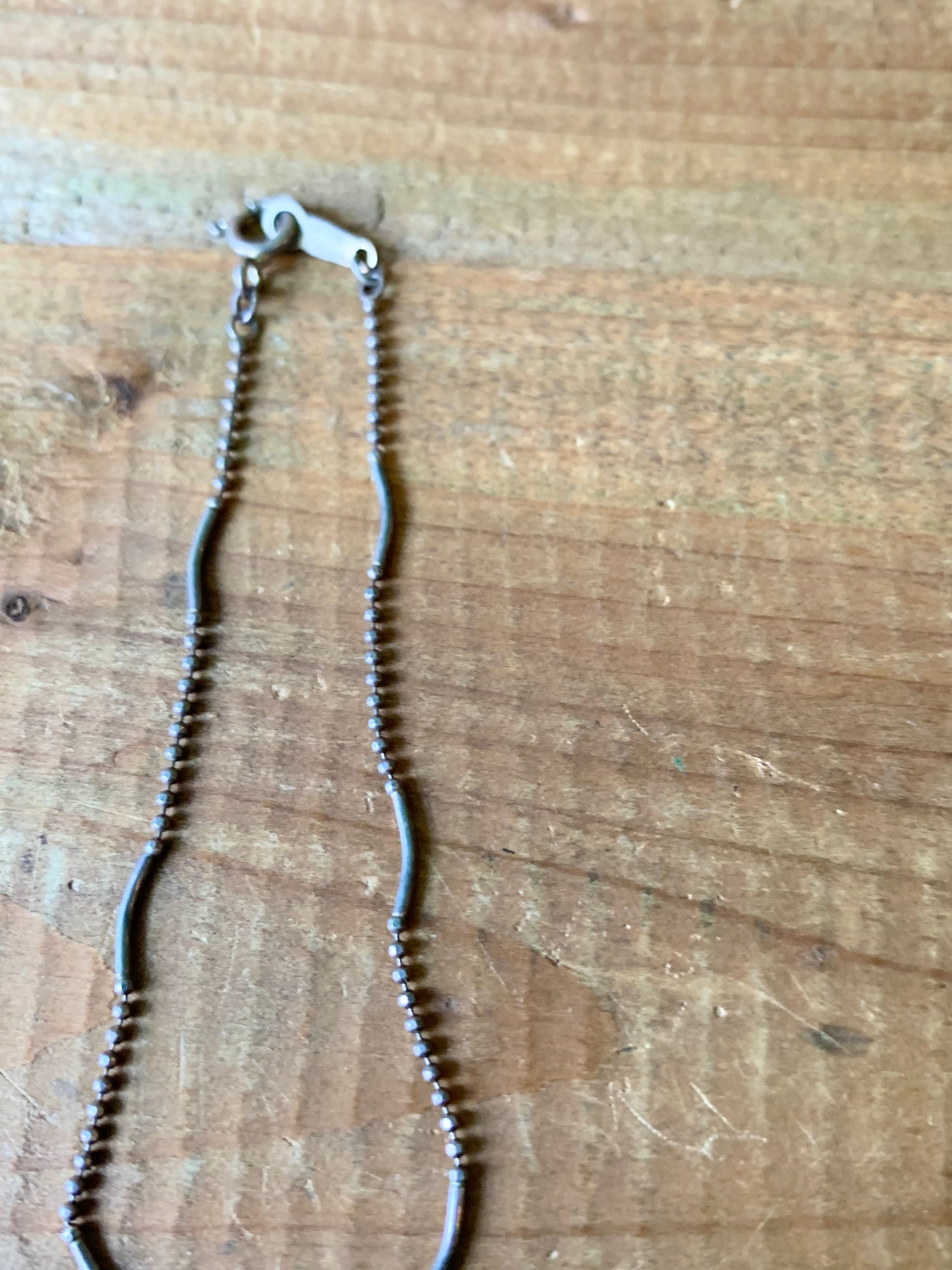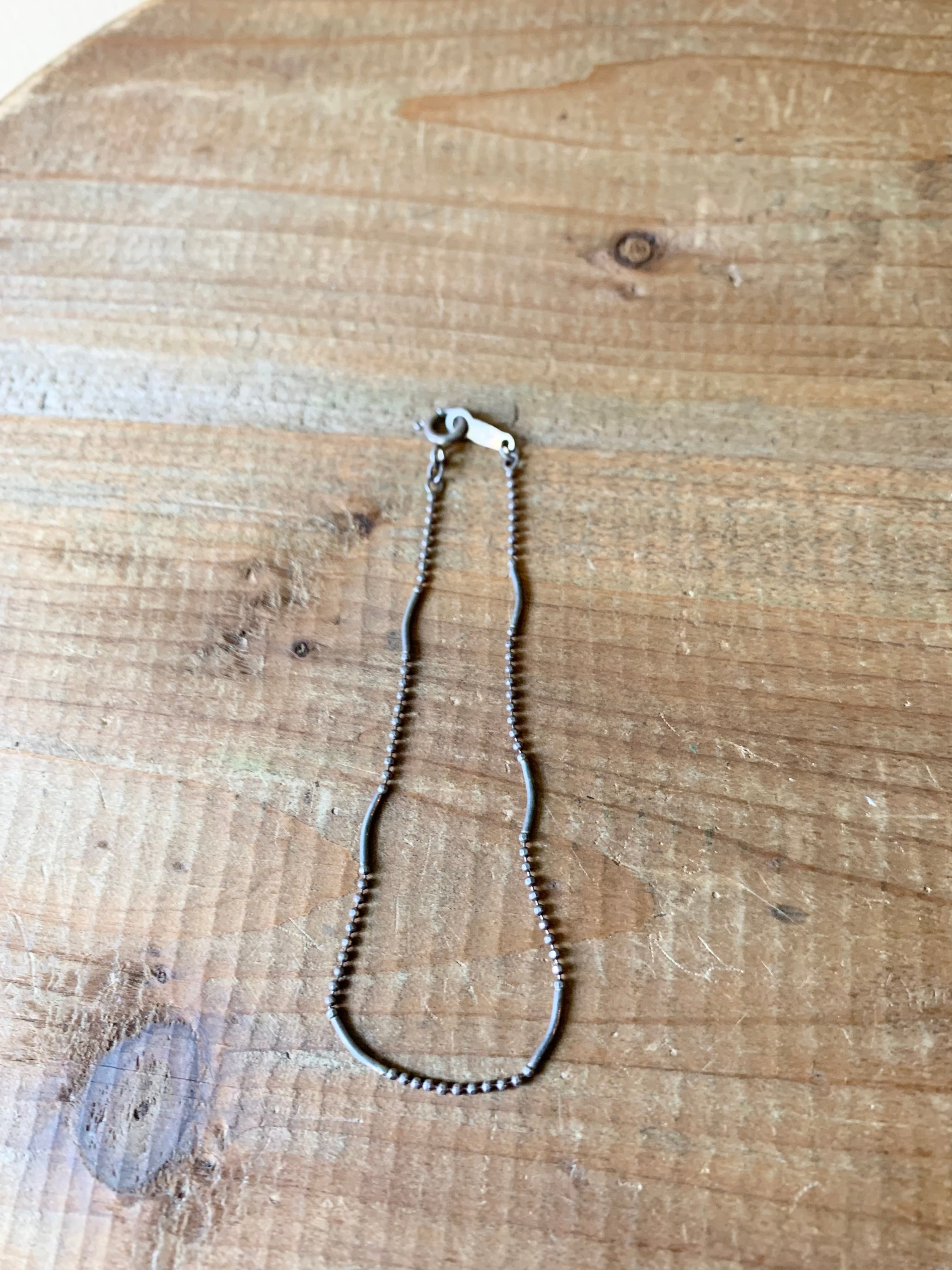 こちらはボールチェーンとやや半円型のデザインチェーンのミックスされたブレスレット。