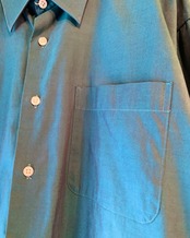 こちらは古い物ではありませんが非常に珍しい光沢のある玉虫ブルーカラーのシャツ。