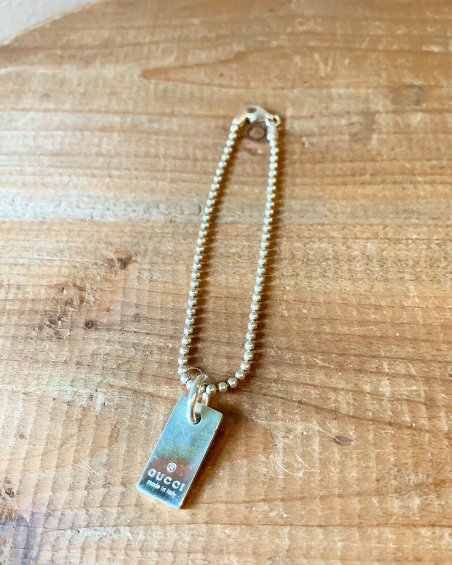 こちらはグッチらしいボールチェーンにブランドロゴの刻印されたプレートモチーフのついたブレスレット。