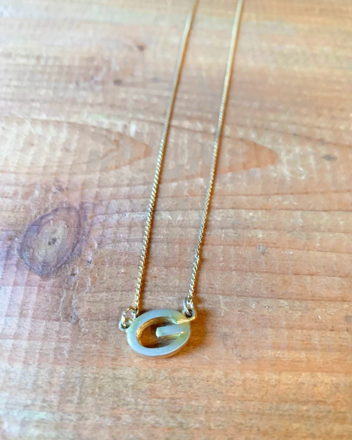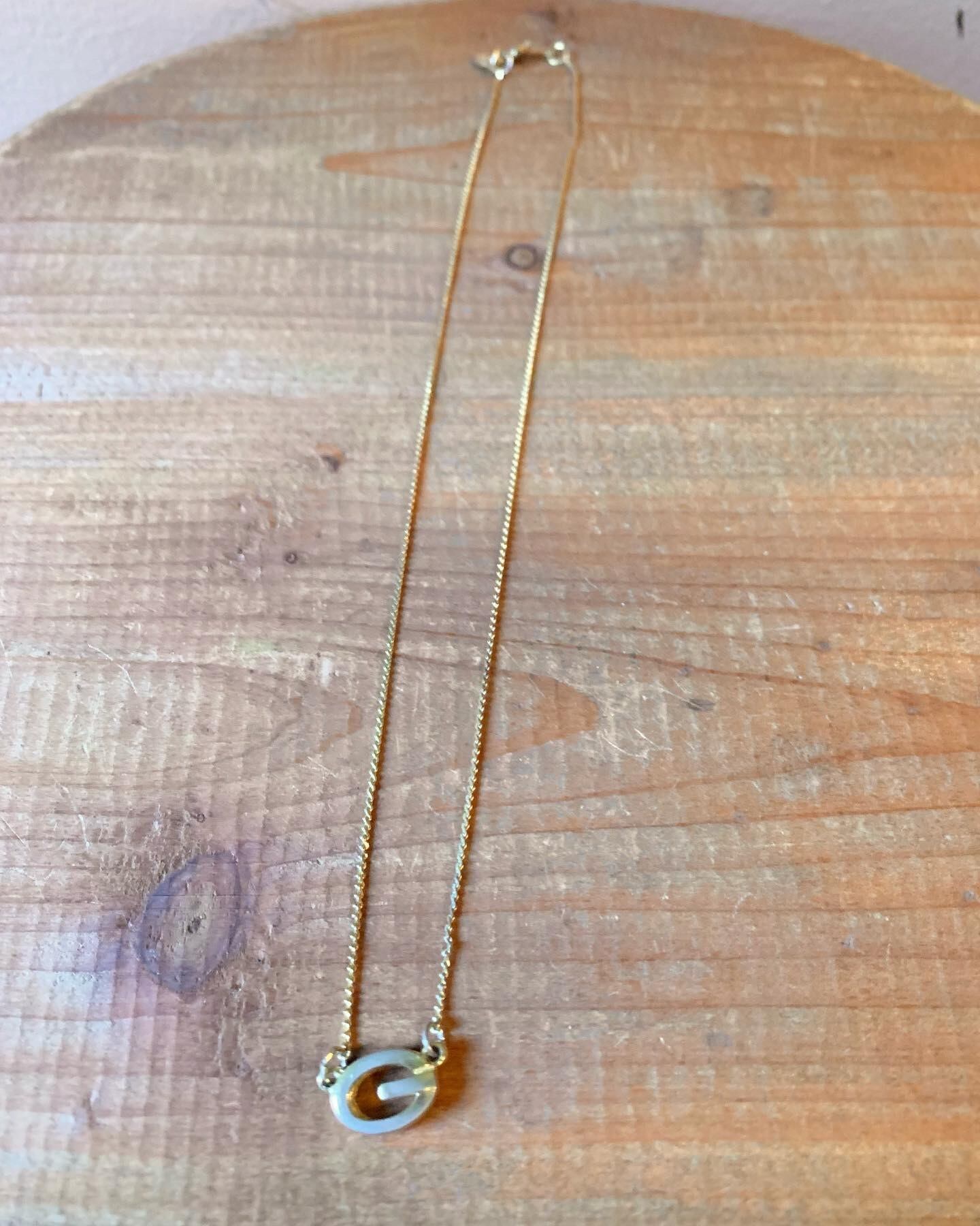 こちらはブランドの頭文字でロゴにもなっている"G"がモチーフとなったネックレス。