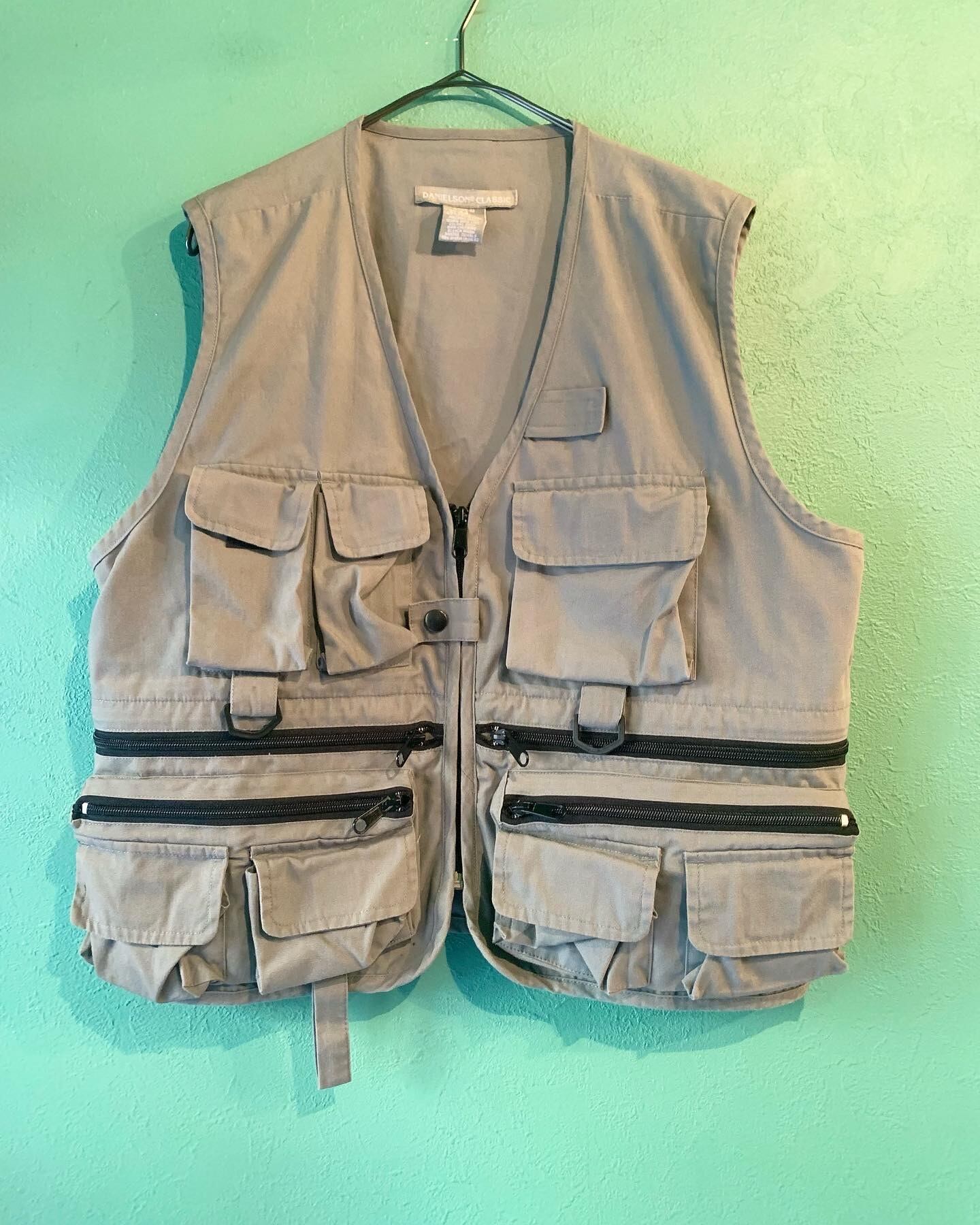 こちらはマットなグレーカラーにポケットのたくさんついたフィッシングベスト。
