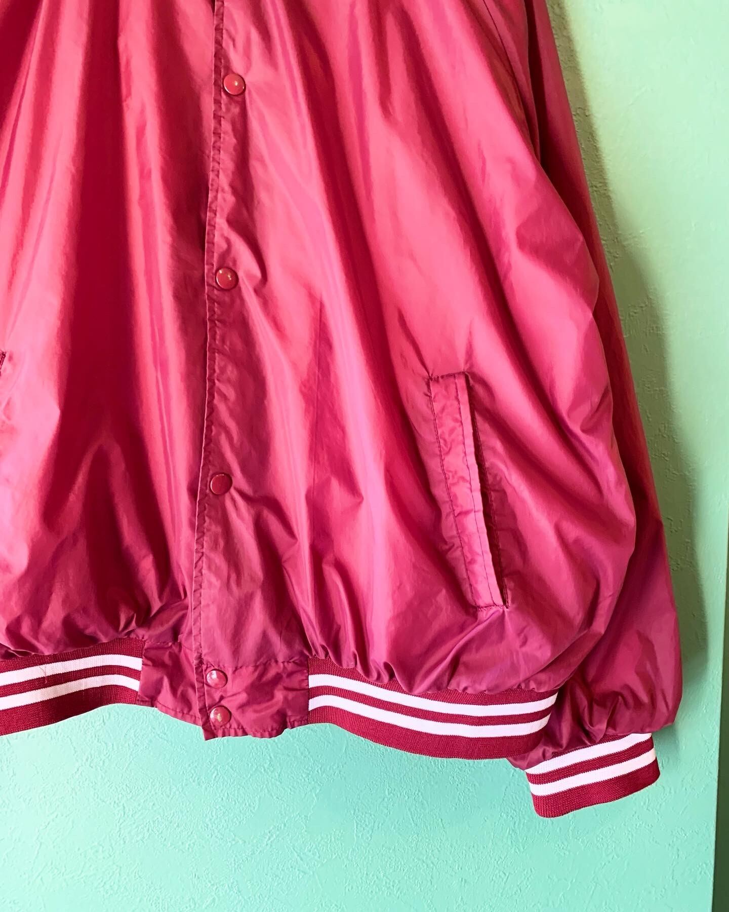 スタジャン型でスナップボタンタイプのスポーツジャケット。