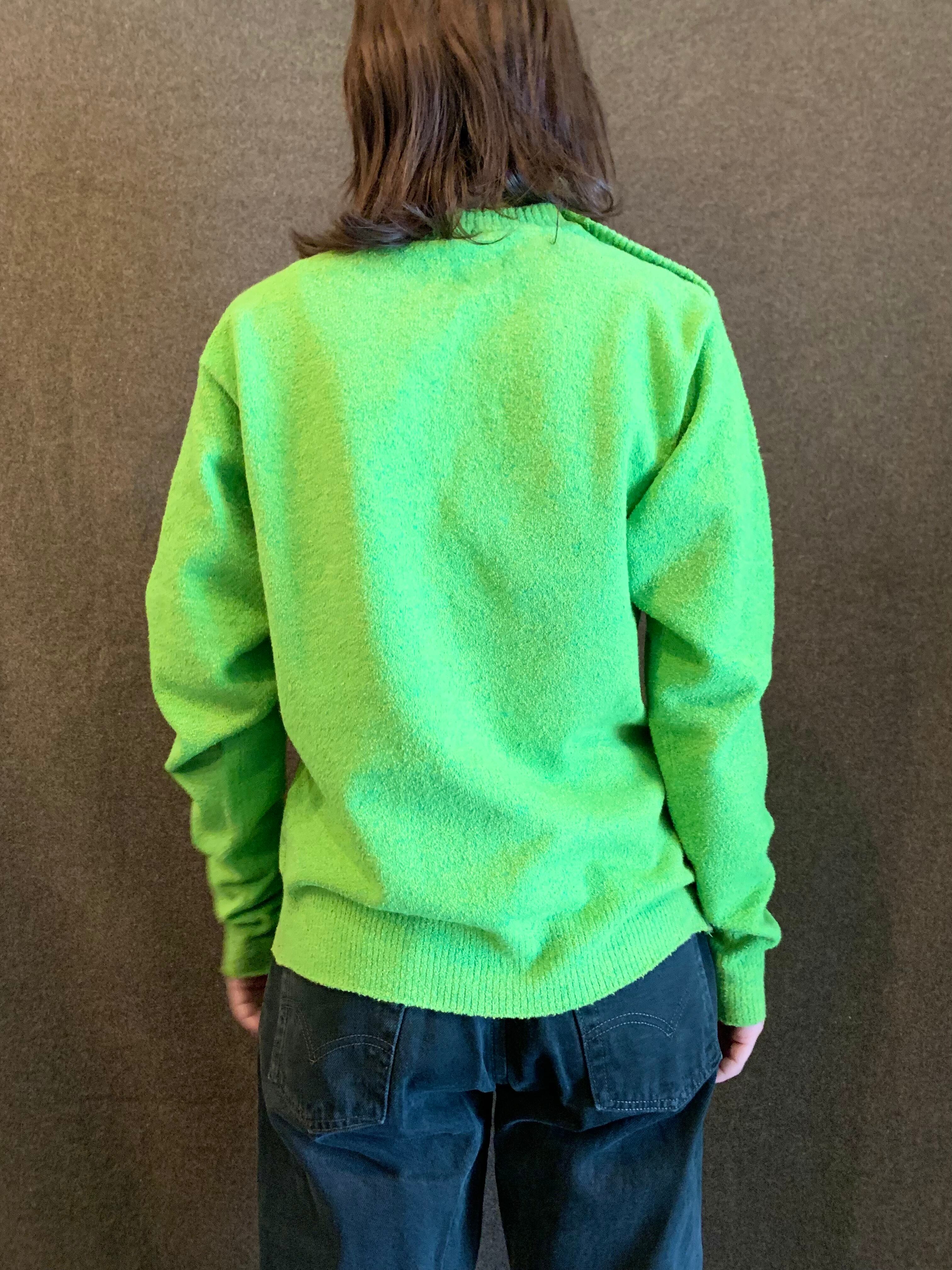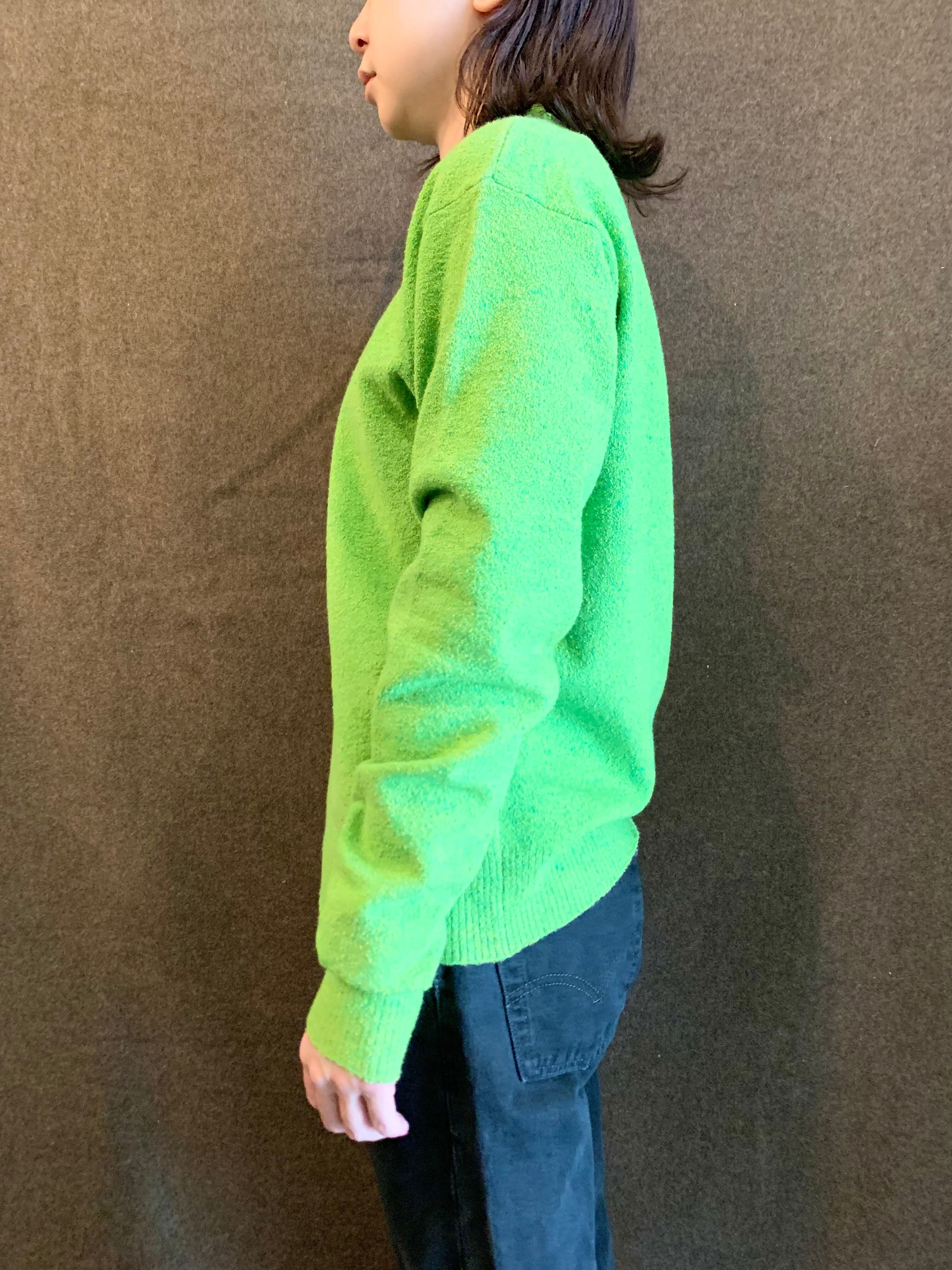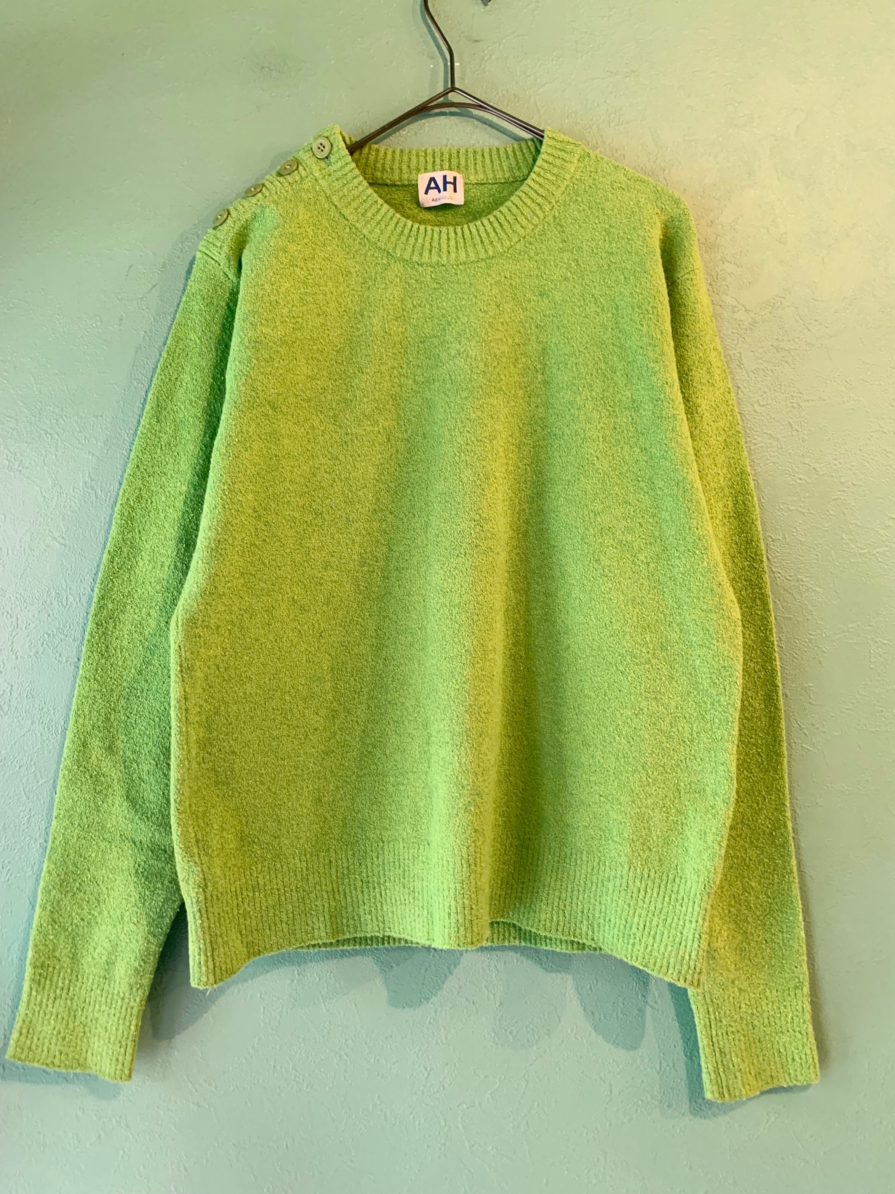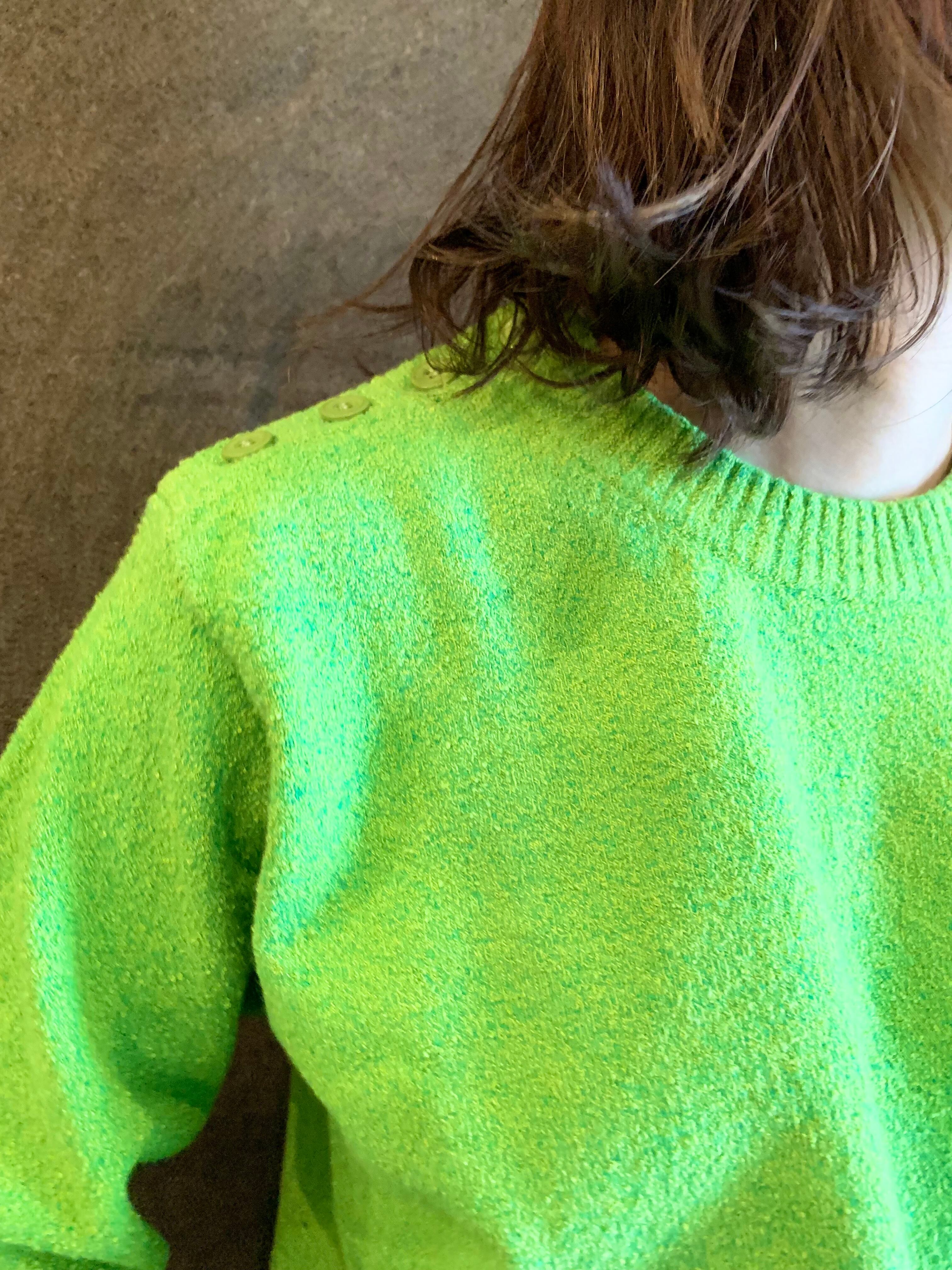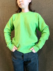 緑×黄色の糸を織り合わせた可愛らしい黄緑カラーのミックスニット。