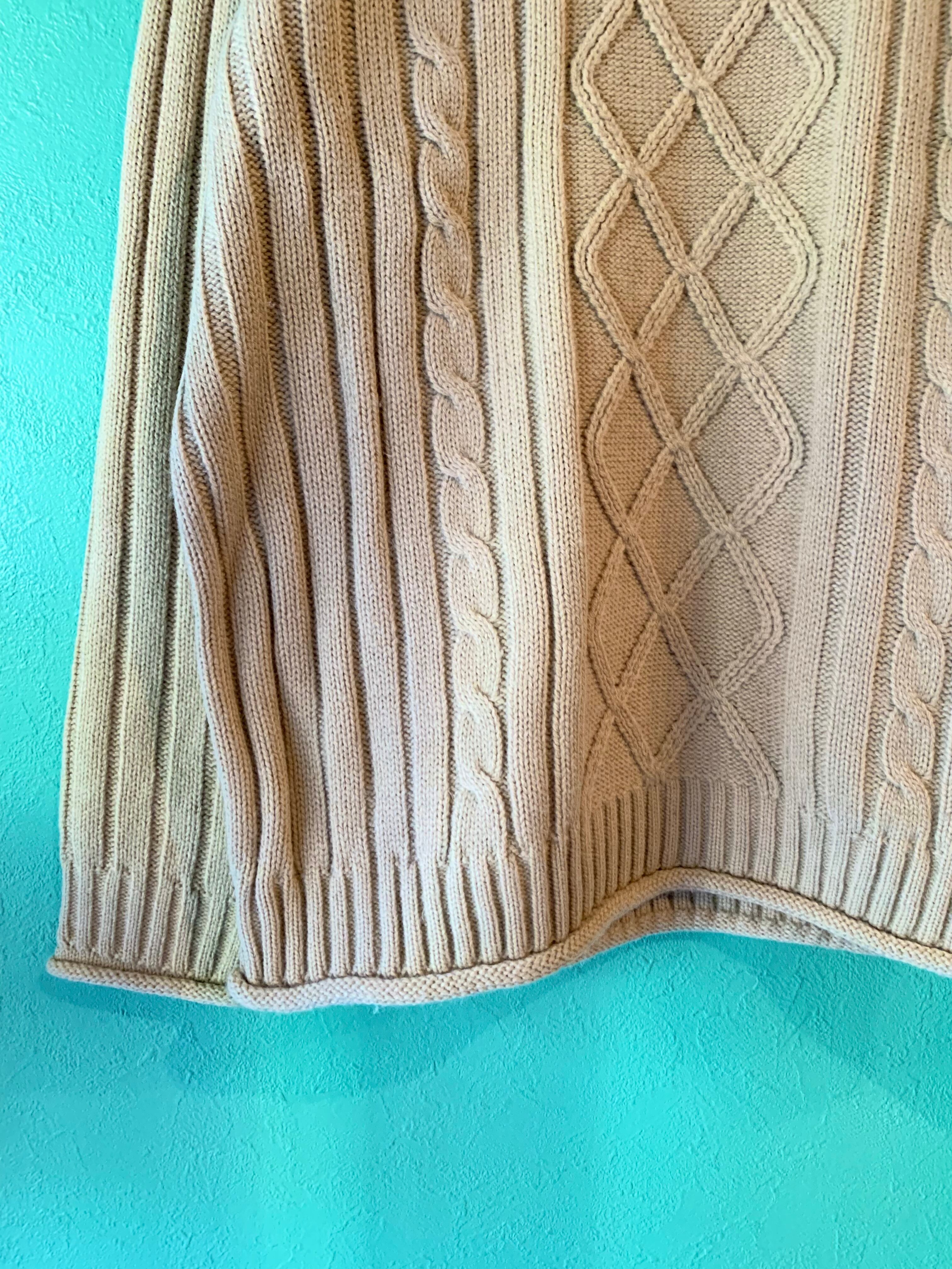 フロントと袖がケーブル、リブ編みになった、一見シンプルだけど一枚でも様になるアイテムです。