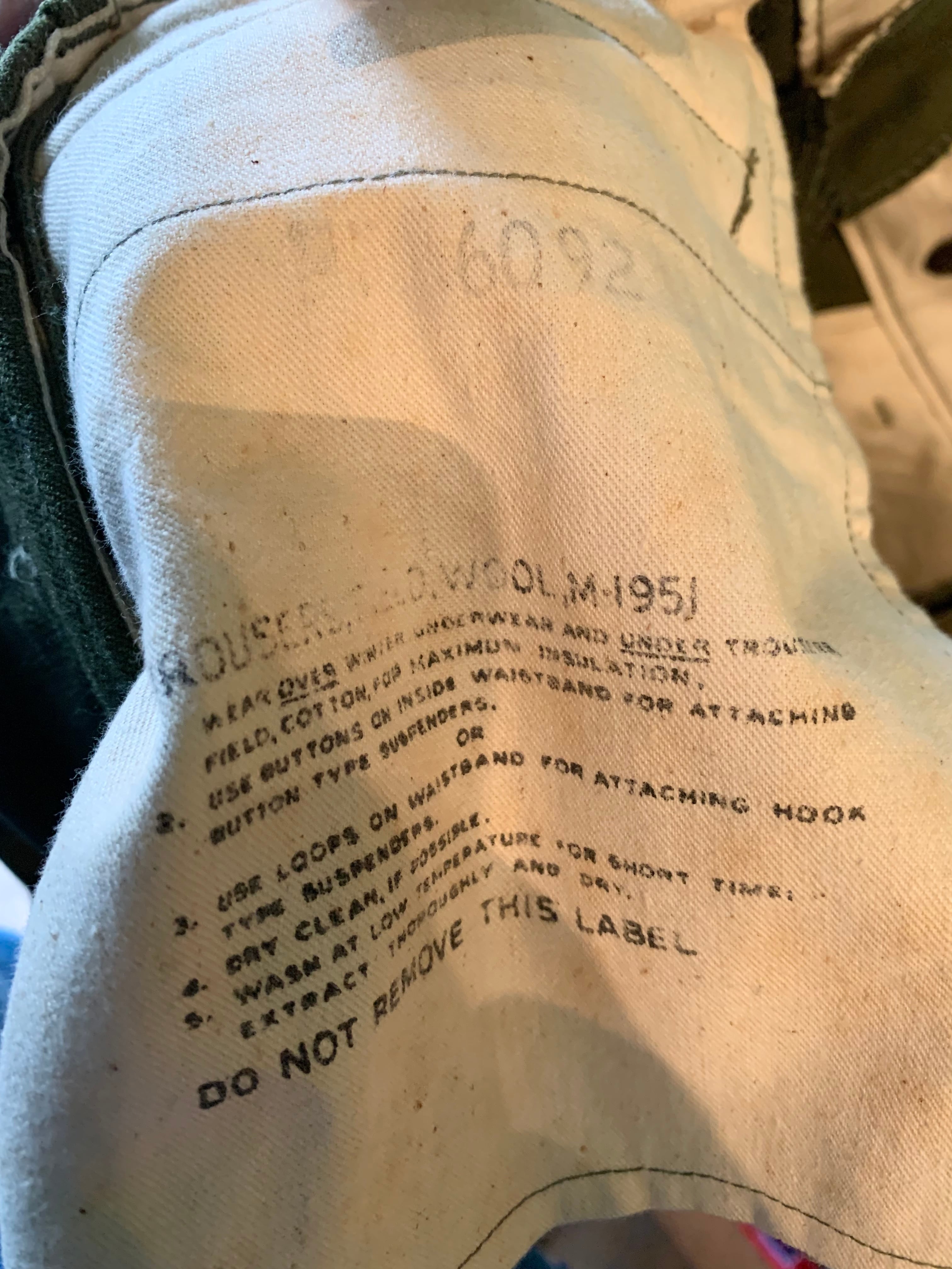 こちらは第二次大戦中のアメリカ軍が装備した寒候期用パンツのM-51フィールドトラウザーズ。