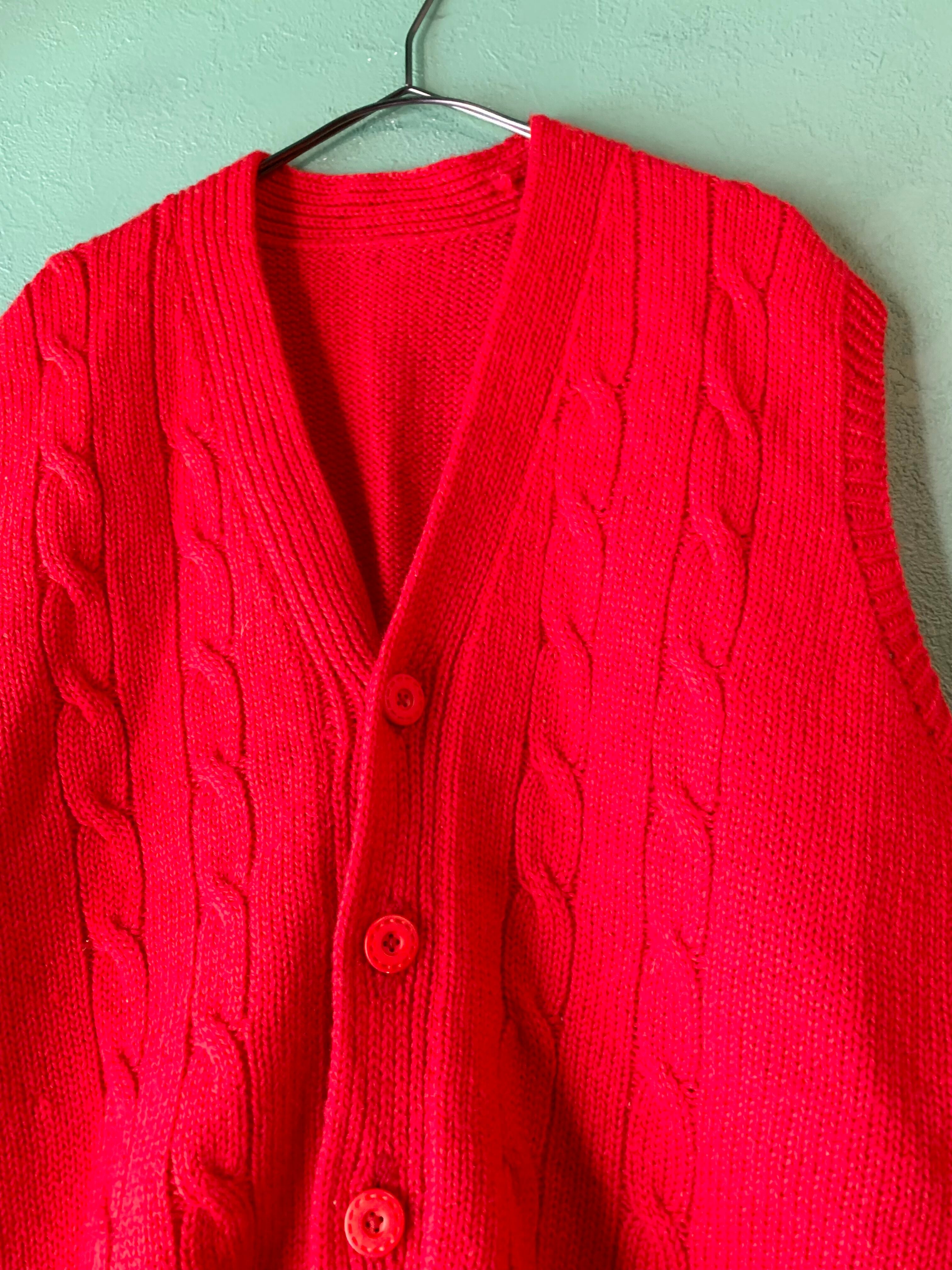 ビビッドなレッドカラーにボタンまで同色の目を惹く1着。