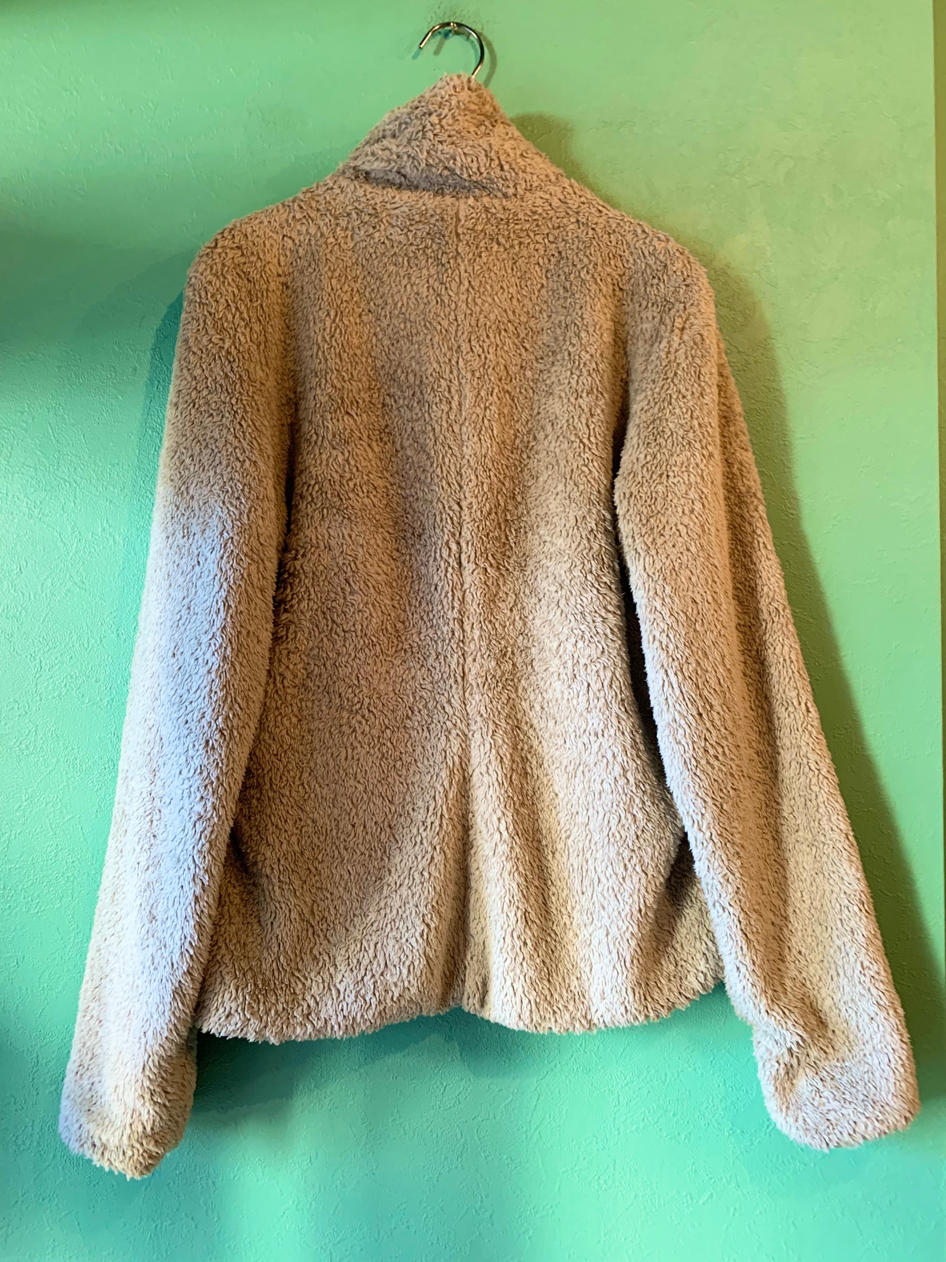 モコモコした見た目にグレーベージュカラーの可愛い1着。