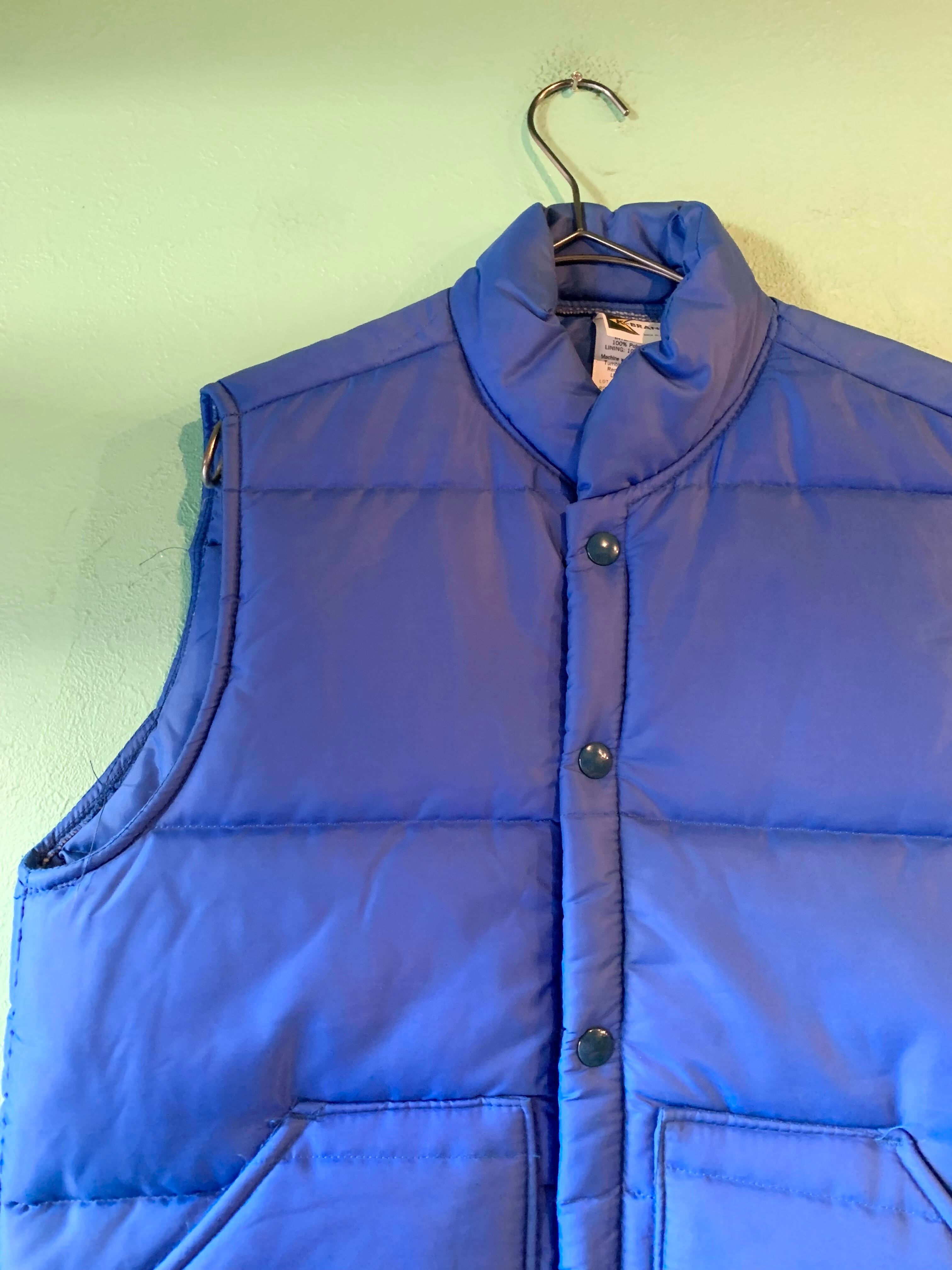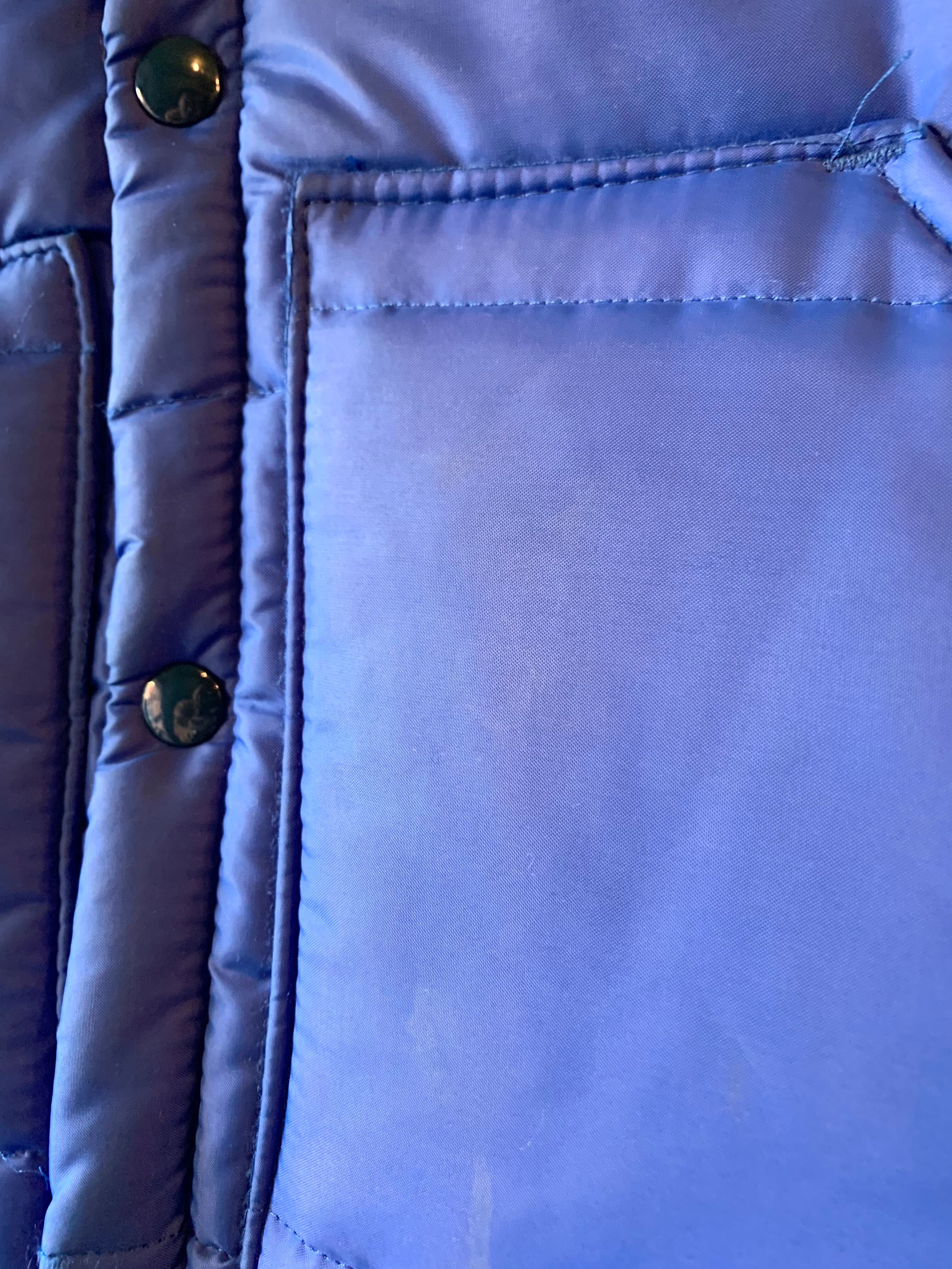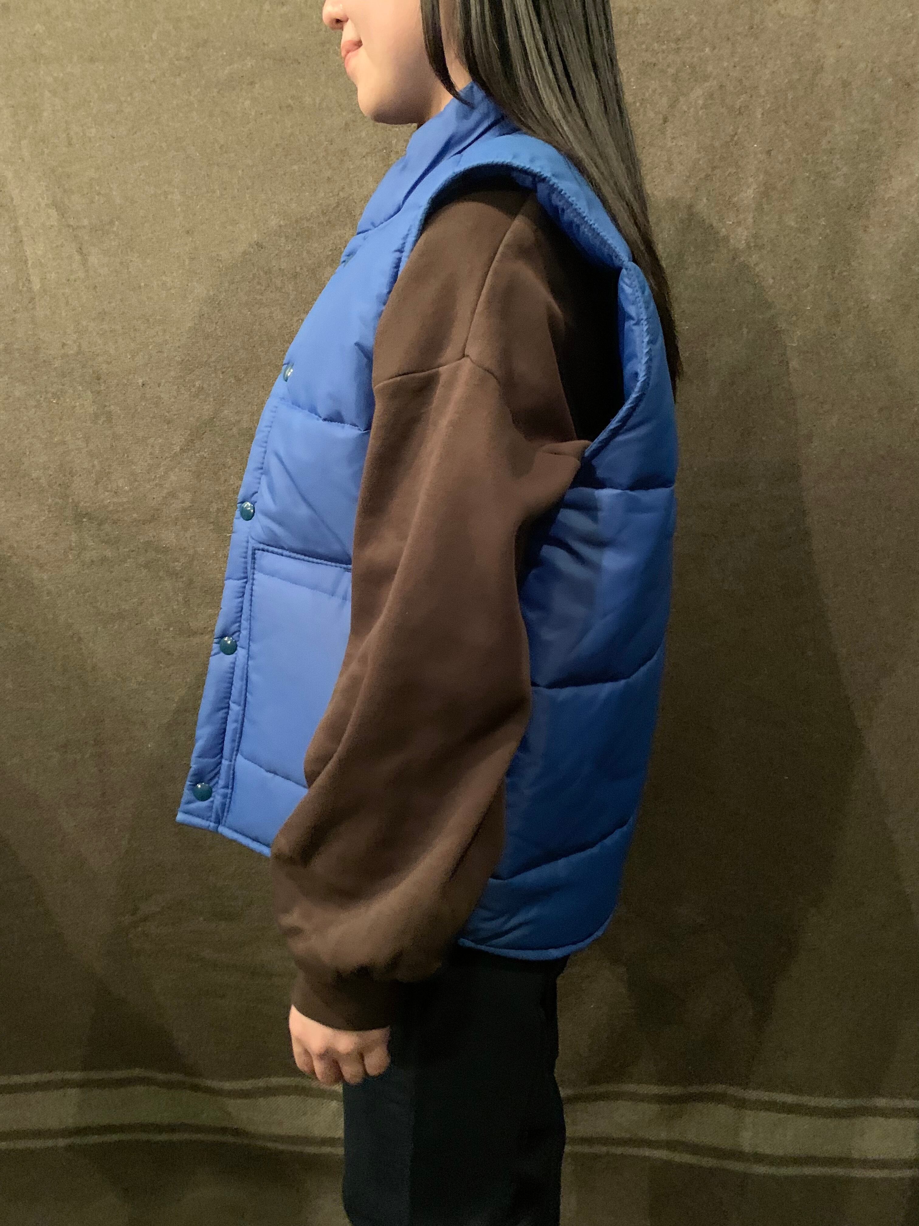 ボタンまでロイヤルブルーカラーとなった中綿ベスト。