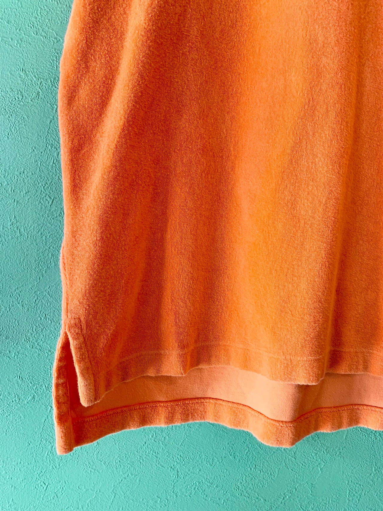 可愛らしいビビッドなオレンジカラーにターコイズブルーのポニーロゴ刺繍がアクセントとなっています。