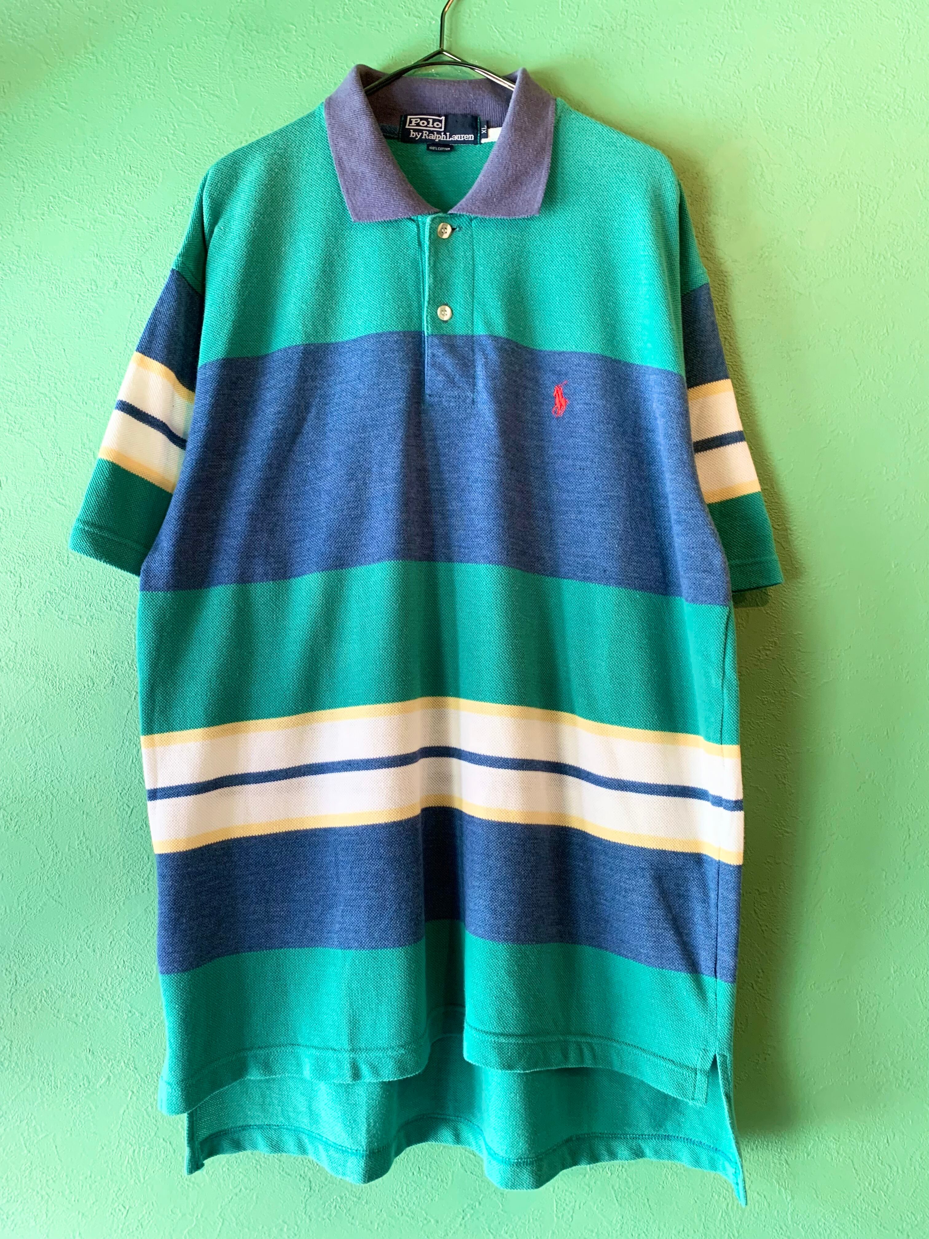 90s Ralph Lauren コットン ボーダーポロシャツ