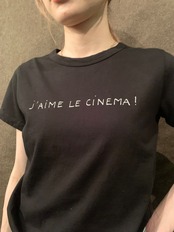 こちらはフロントに"j'AiME LE CiNEMA!" (映画が大好き)とラフなタッチでレターリングプリントのされた可愛いTシャツ。
