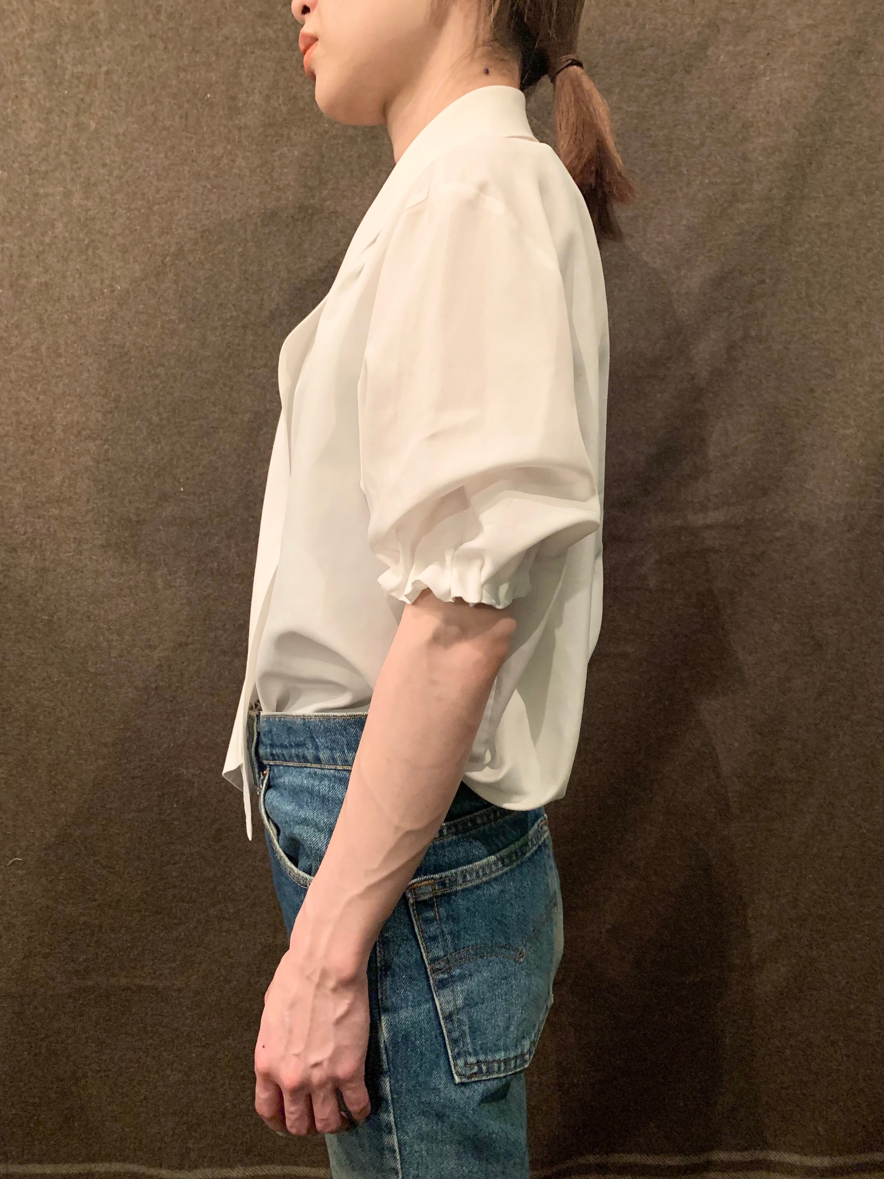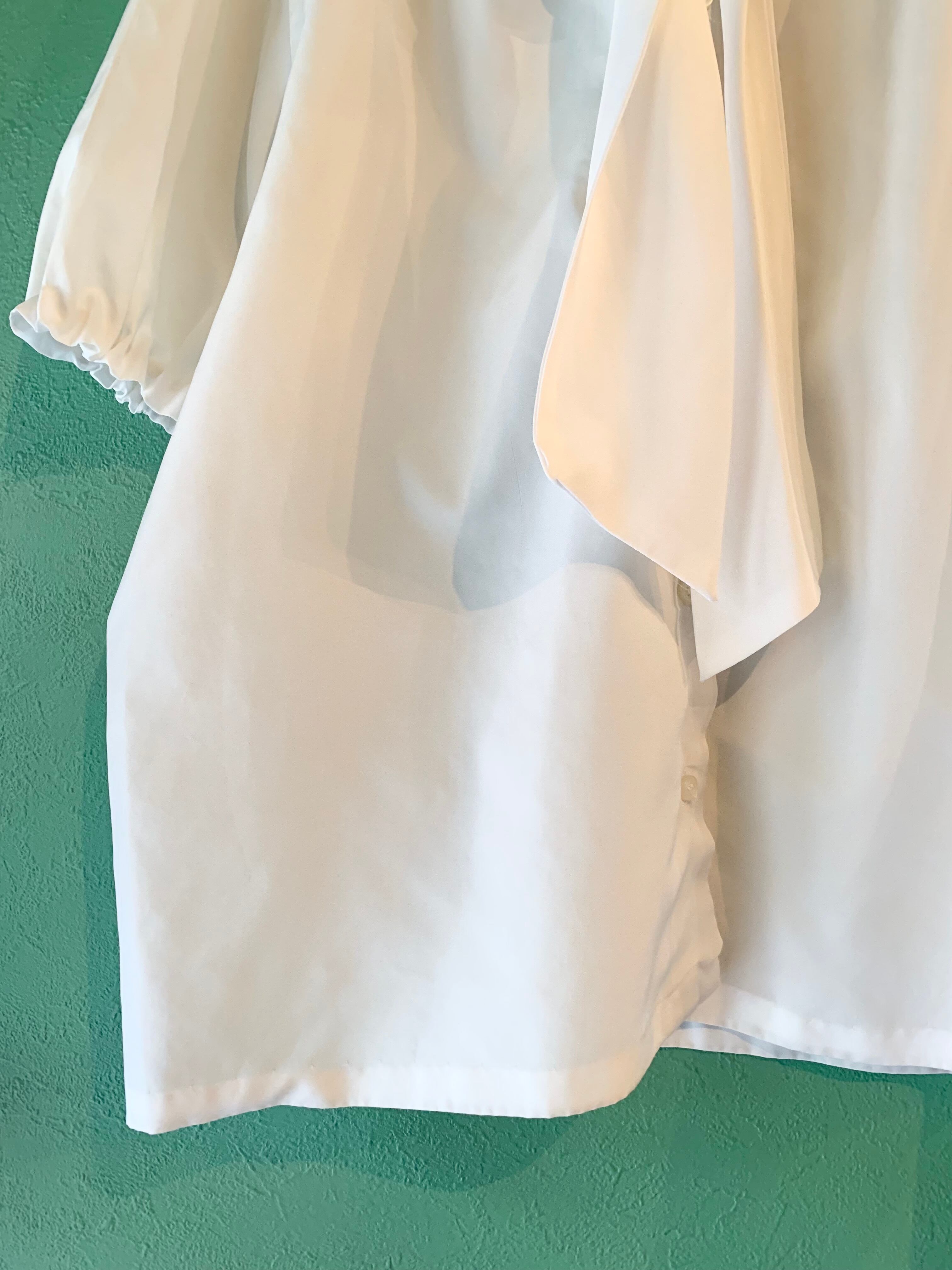 爽やかなホワイトカラーに袖はリブになったパフスリーブデザイン、身幅がゆったりとしたボックスシルエット。