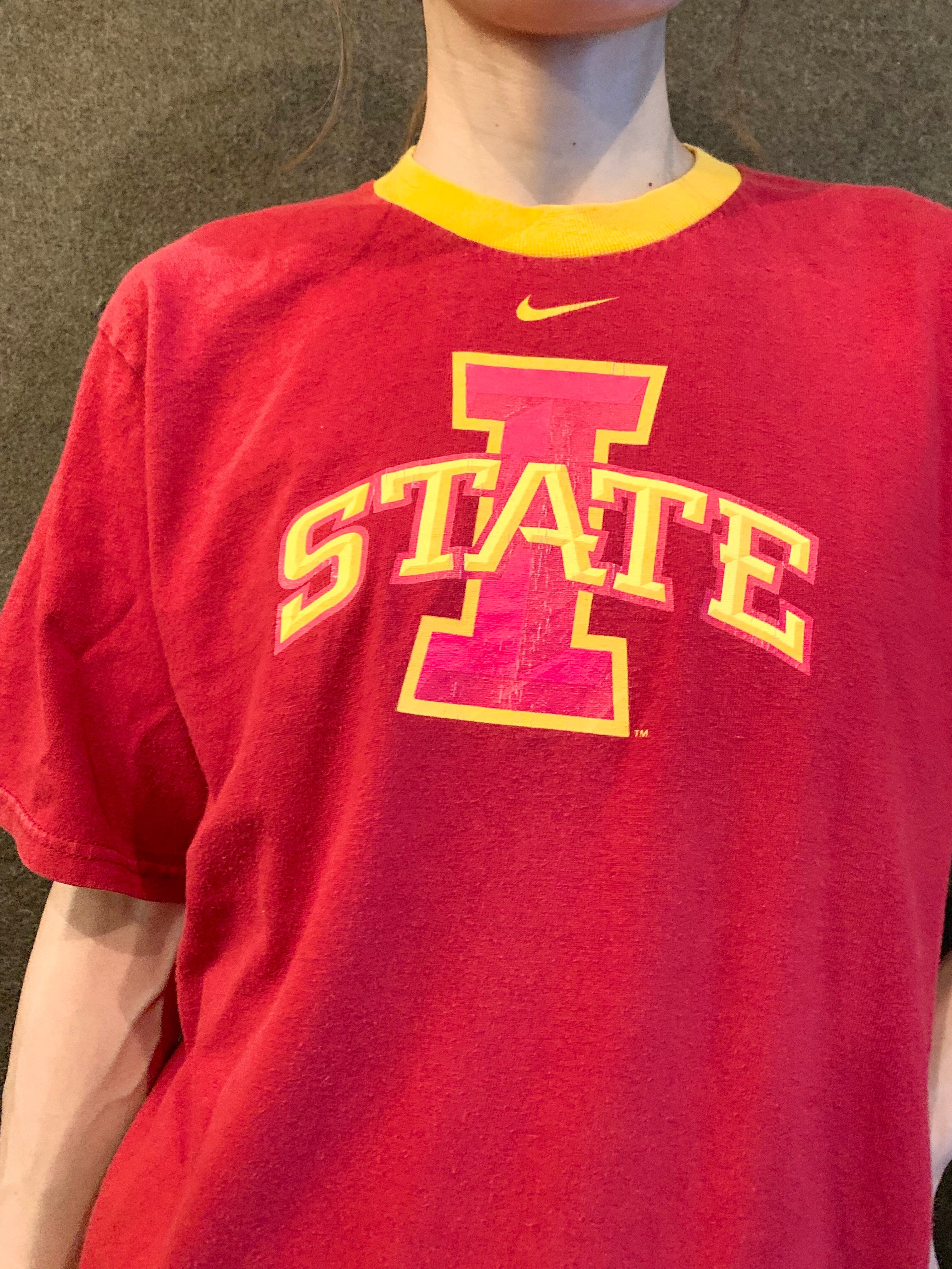 近年人気のリンガーTシャツでおそらくアイオワ大学のカレッジアイテム。