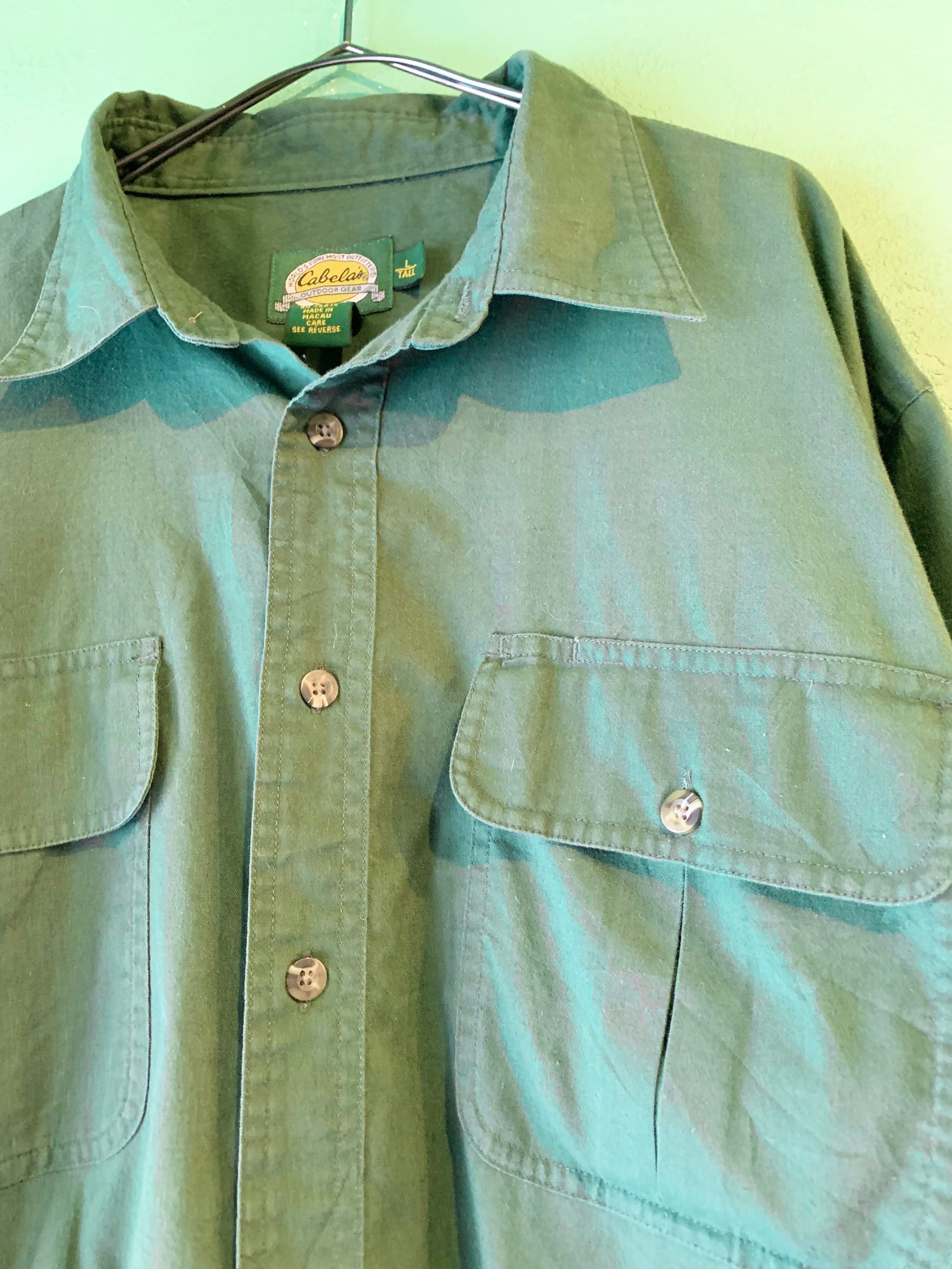 こちらはスウェーデン軍のような深みのあるグリーンカラーに両胸フラップポケット、エルボーパッチのついたカベラスらしいワークシャツ。