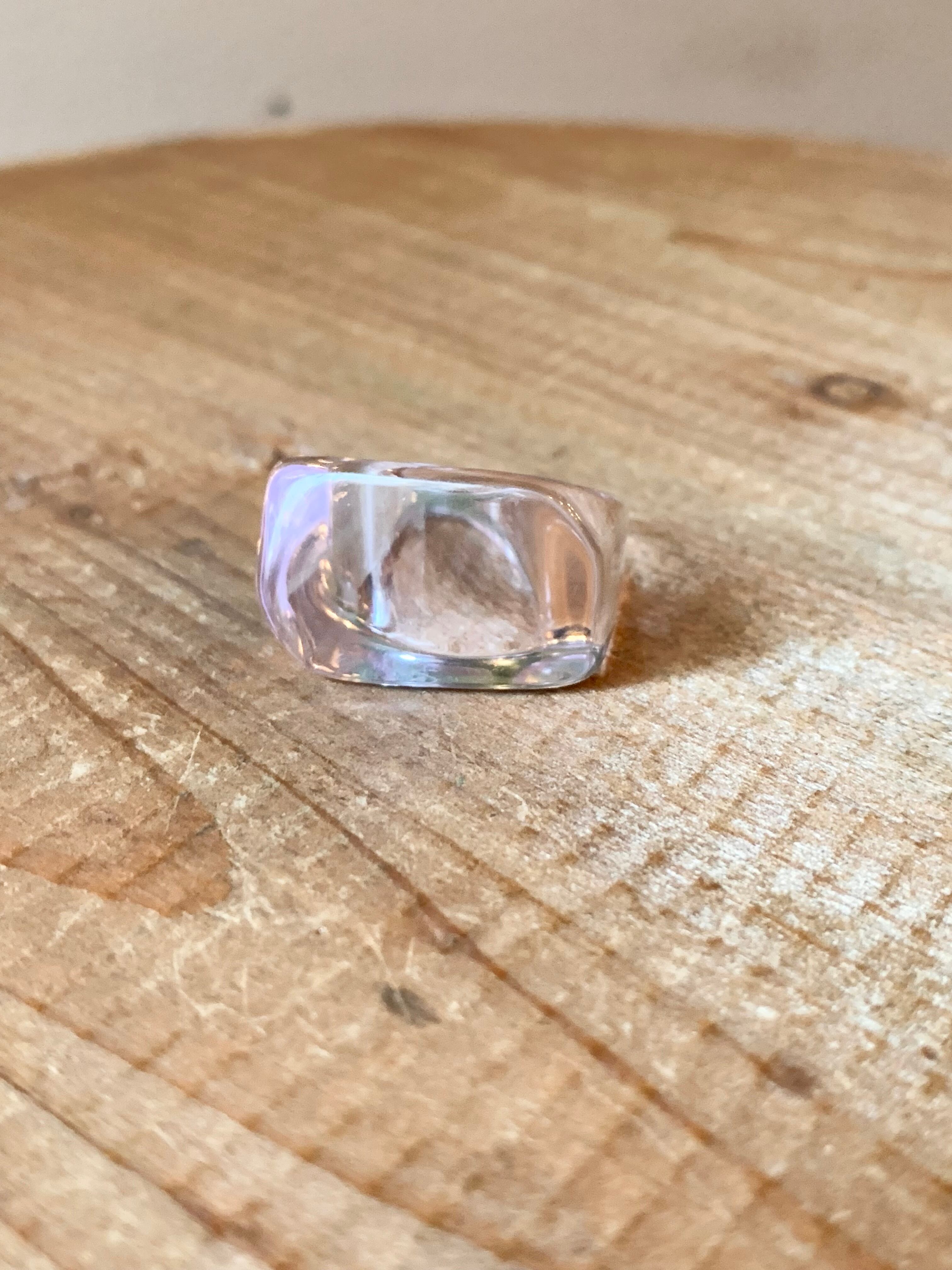 ボリューム感がありつつもクリアカラーによりコーディネートに馴染みやすいカジュアルライクなリングかと思います。