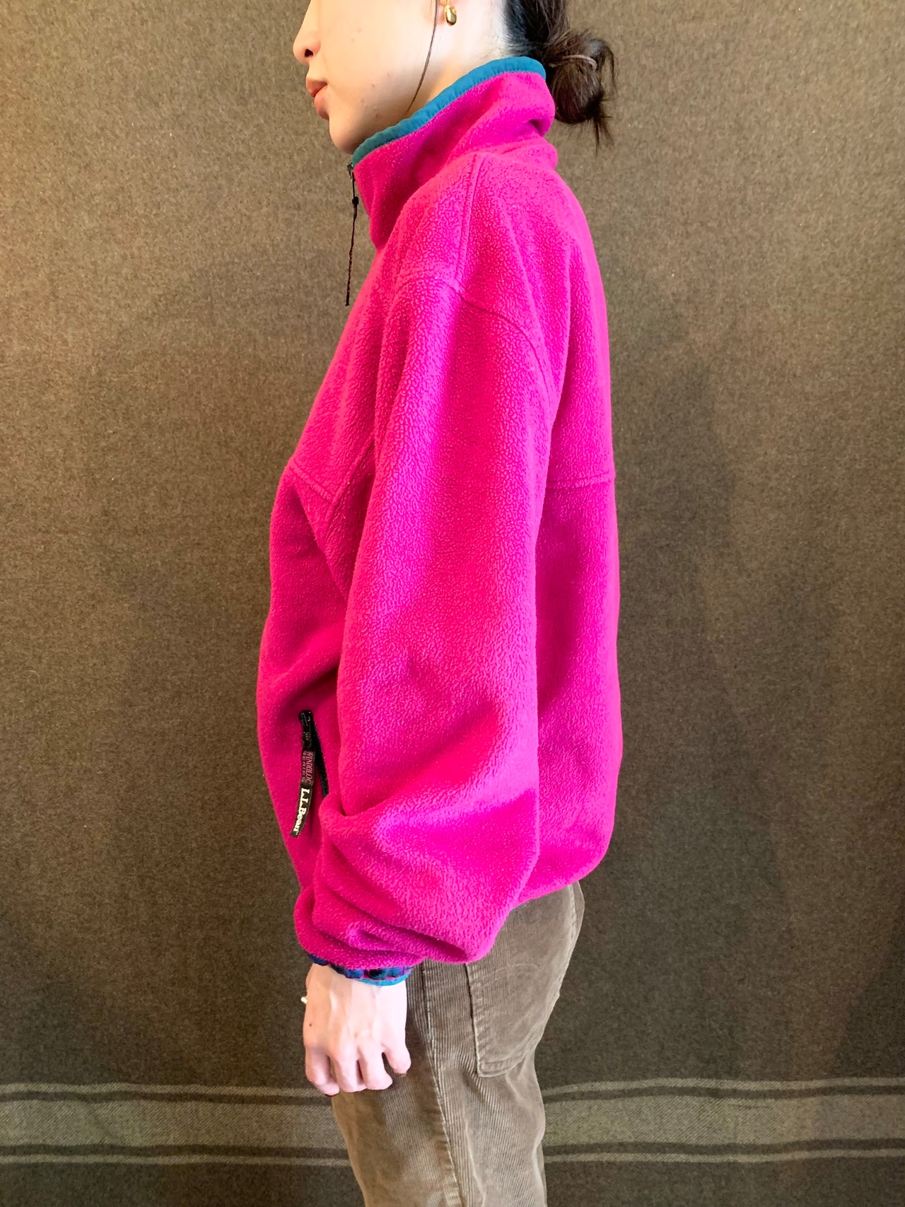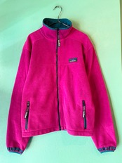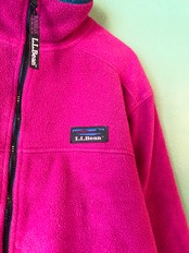 可愛らしいビビッドなピンクパープルカラーにエルエルビーンのフリースアイテムでは珍しい袖とフロントジップの比翼部分にチロリアンテープデザインがアクセントとなっています。