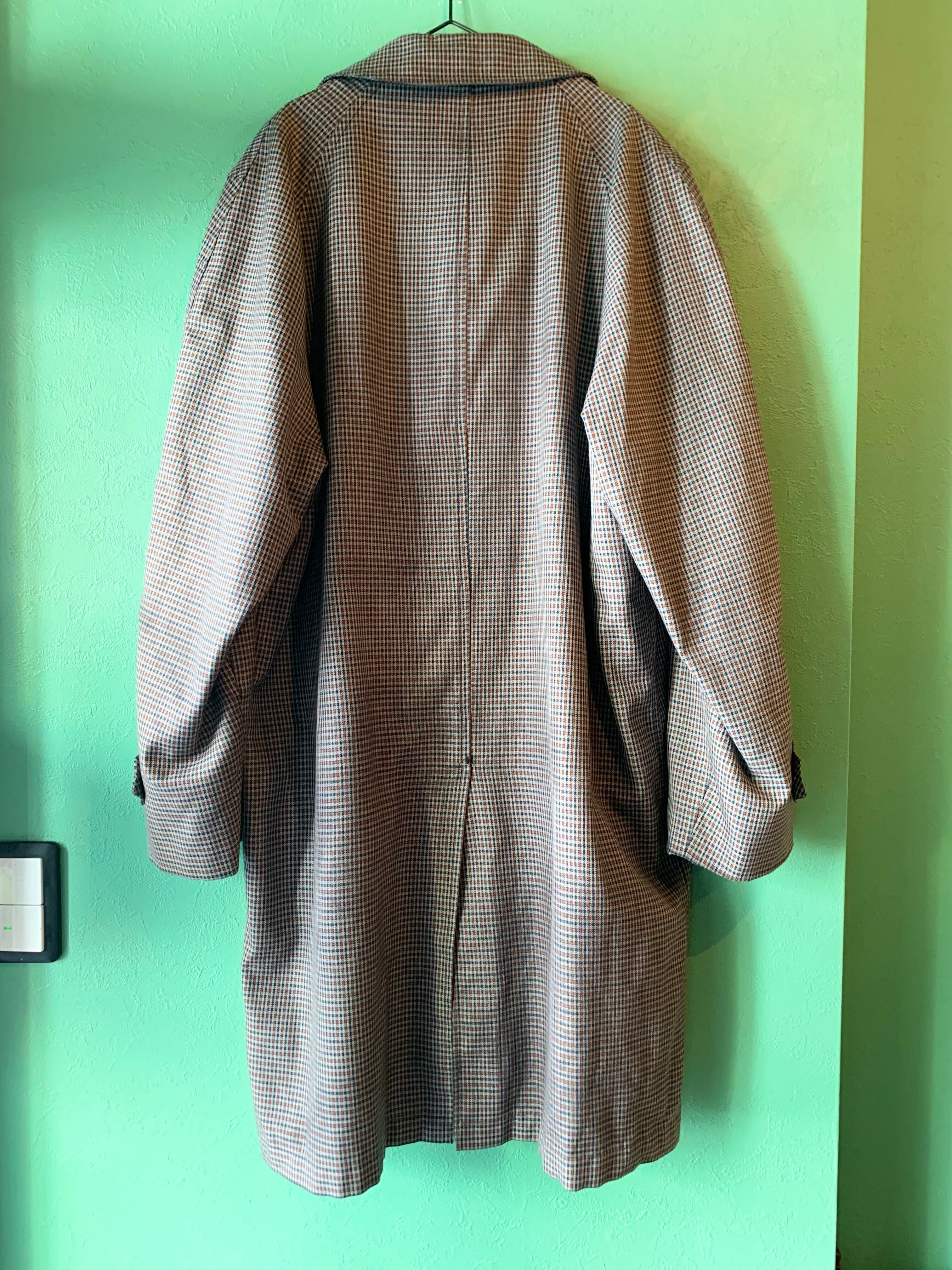 こちらはグレー×ネイビー×くすんだオレンジカラーの可愛らしいカラーリングのチェックコート。
